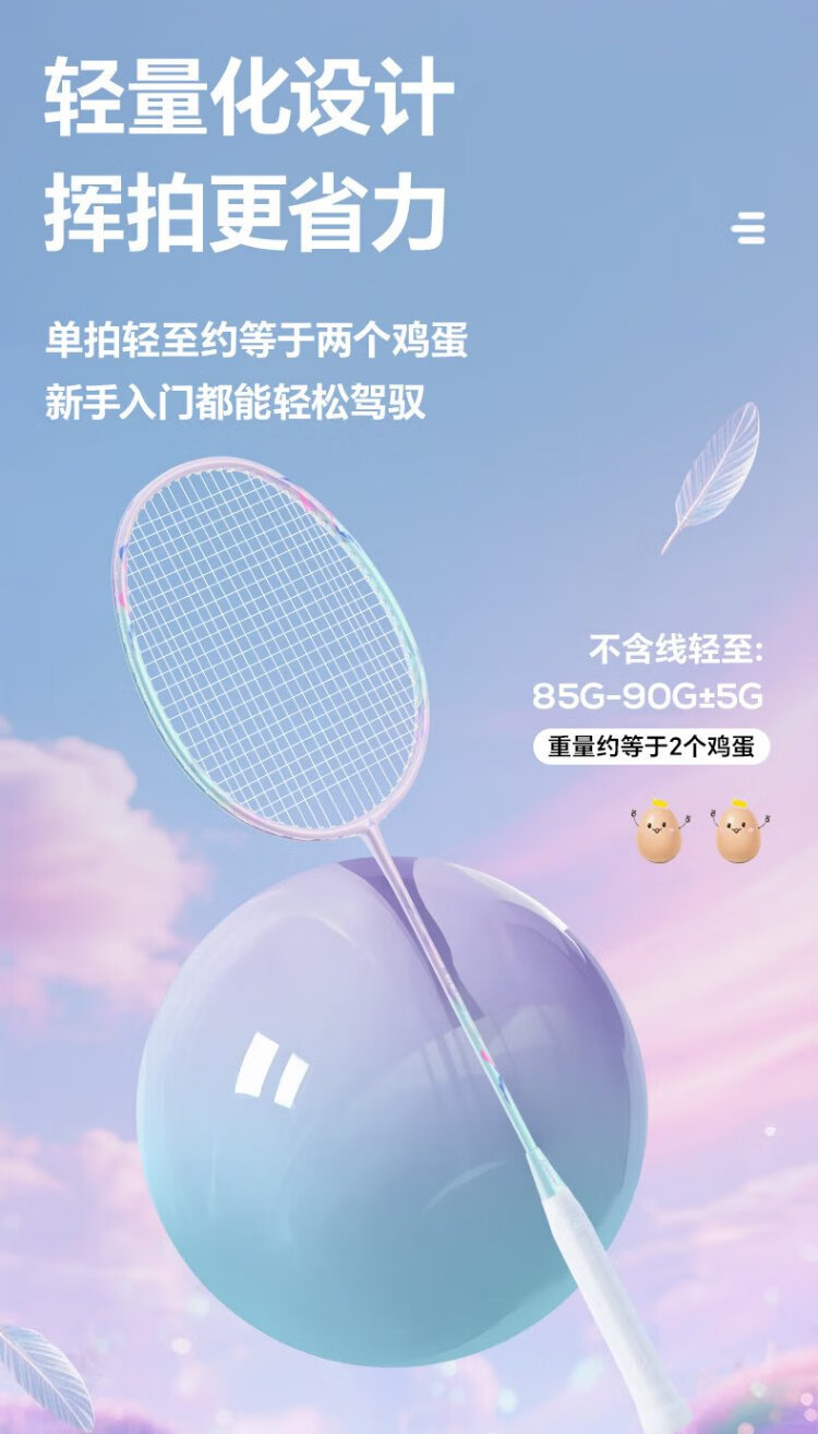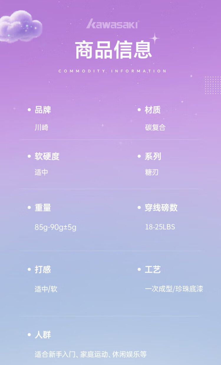 川崎(KAWASAKI)羽毛球拍糖刃X1碳素复合纤细中杆超轻耐用球拍儿童成人通用
