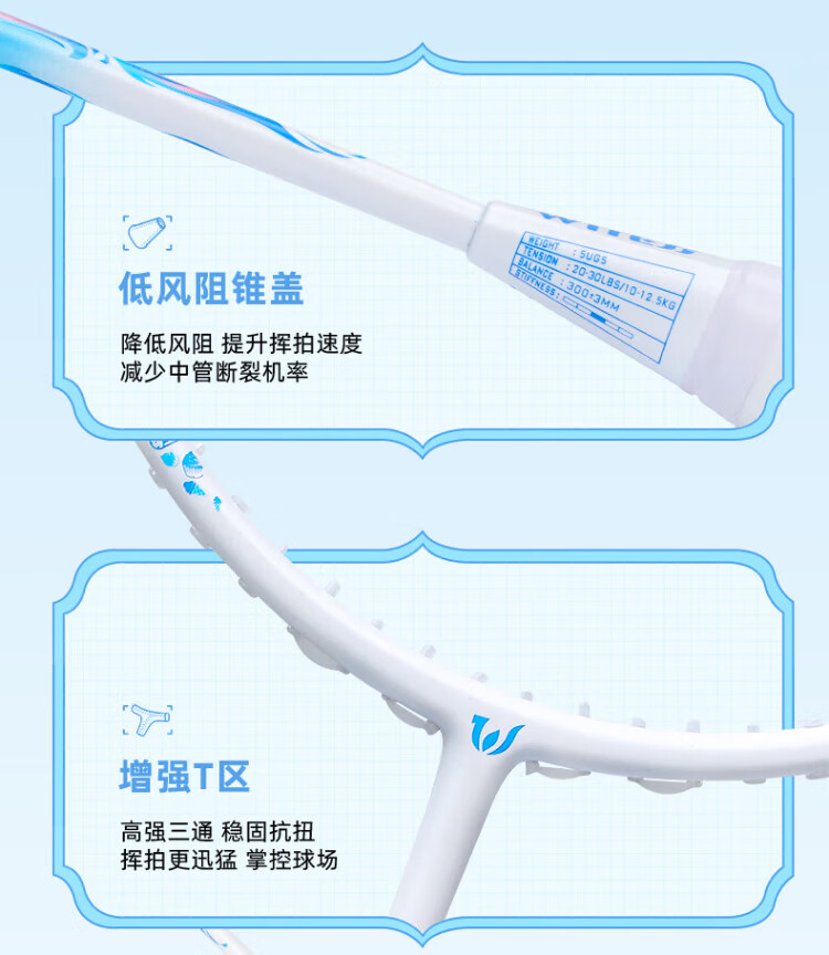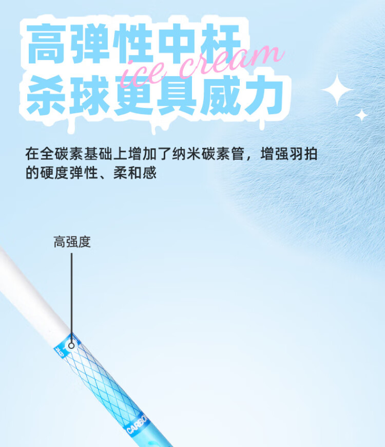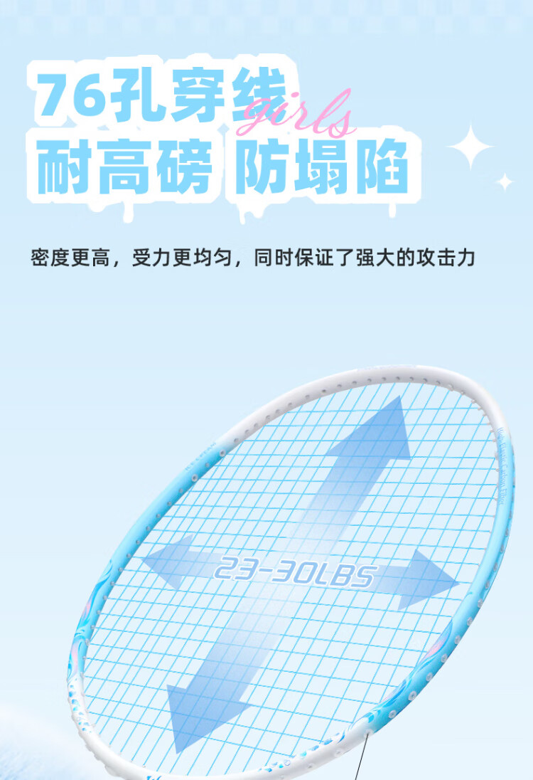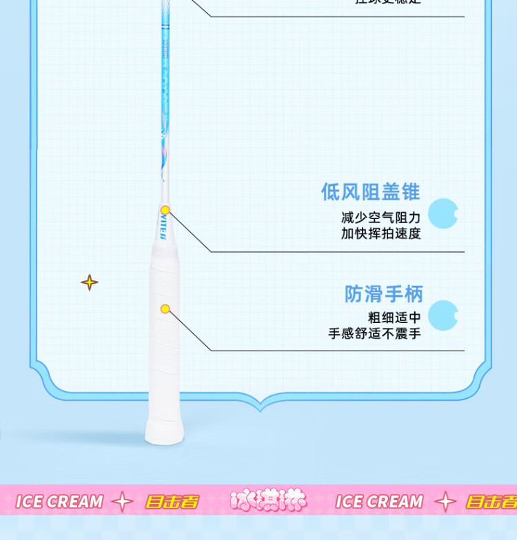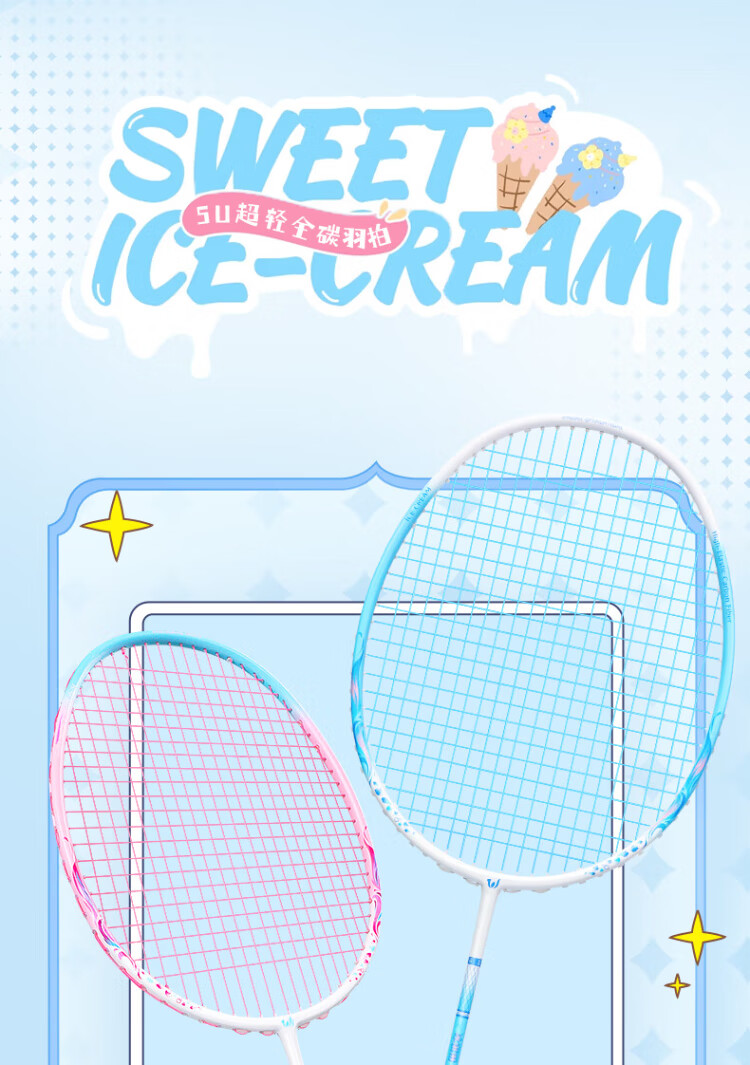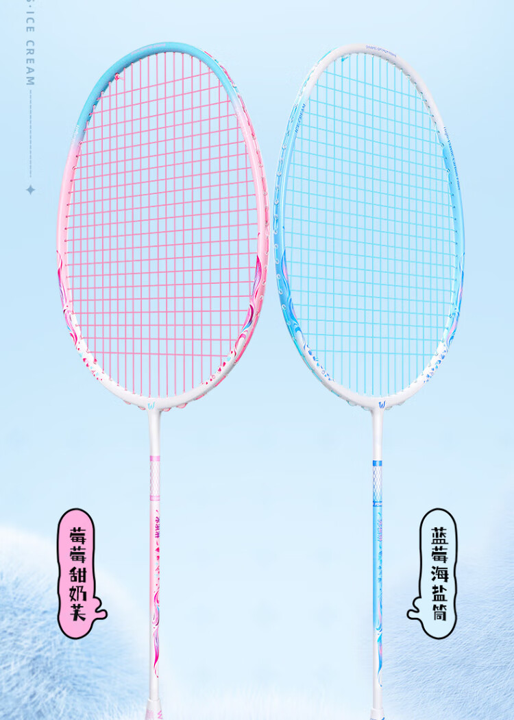 WITESS羽毛球拍对拍超轻全碳素纤维双拍5U冰淇淋系列赠6球+手胶*2+黑包