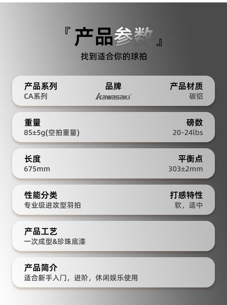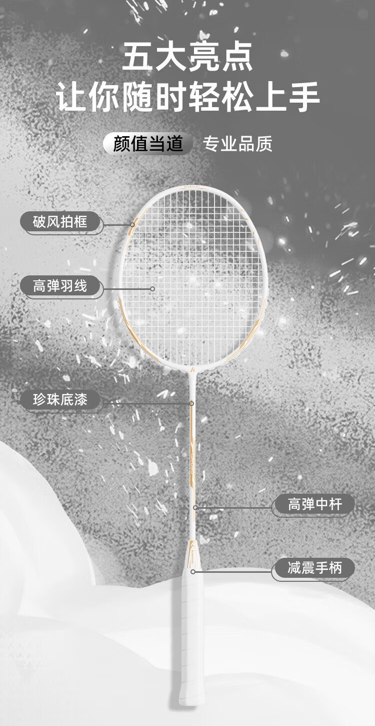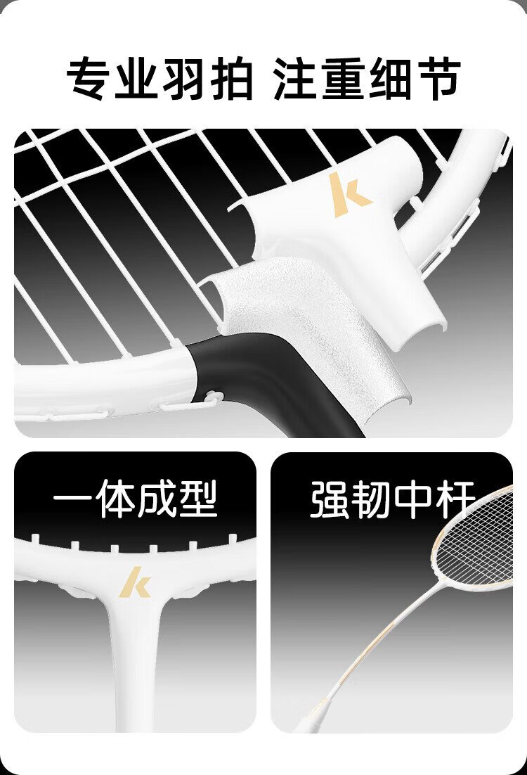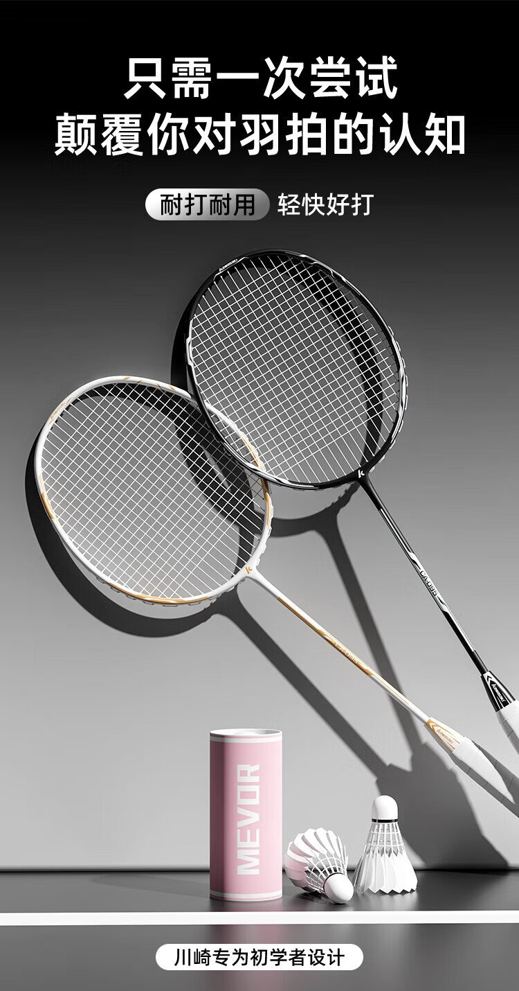 KAWASAKI川崎羽毛球拍对拍套装学生训练入门耐打双拍CA-095黑白金(已穿线)
