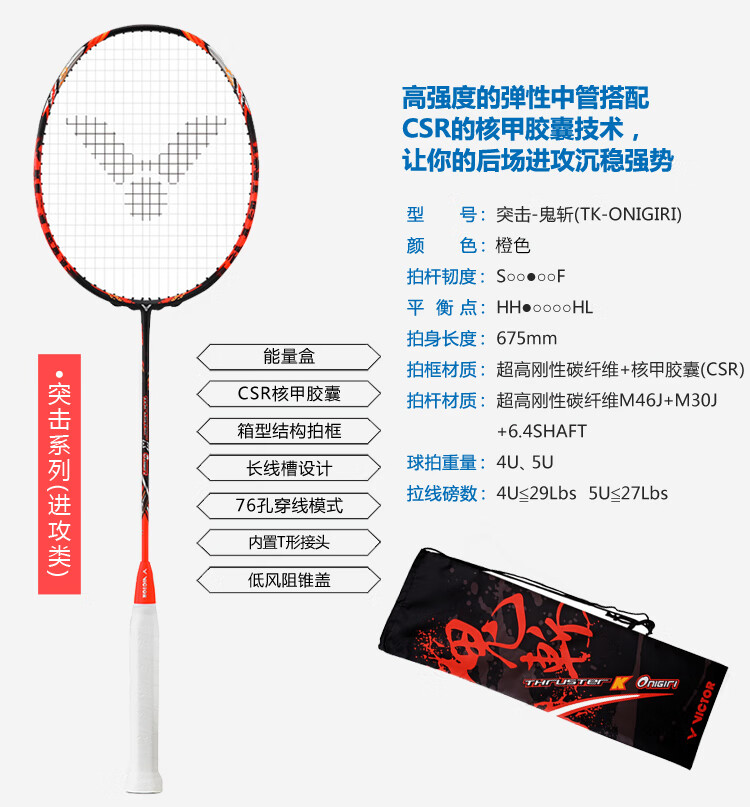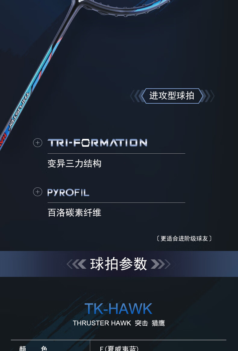 威克多羽毛球拍全碳素进阶单拍TK-ONIGIRI维轻量耐打高磅小隼TK30 TK-HAWK小隼4u蓝色(穿线+手胶