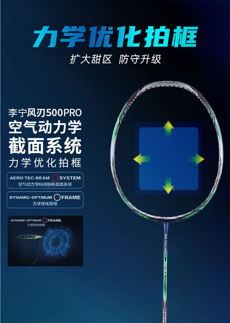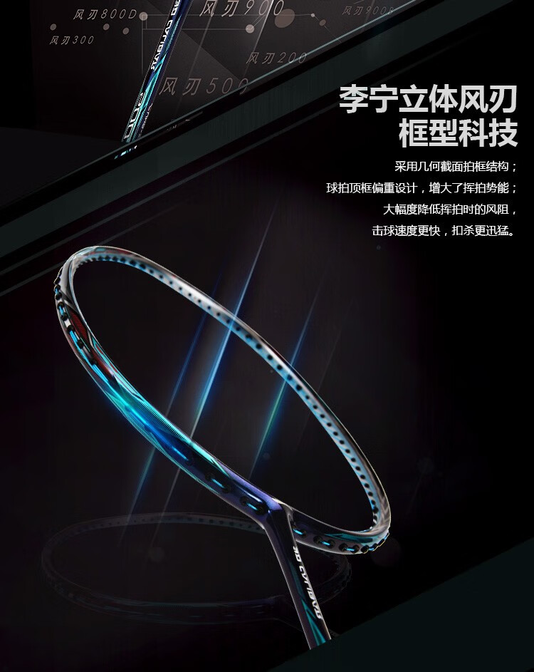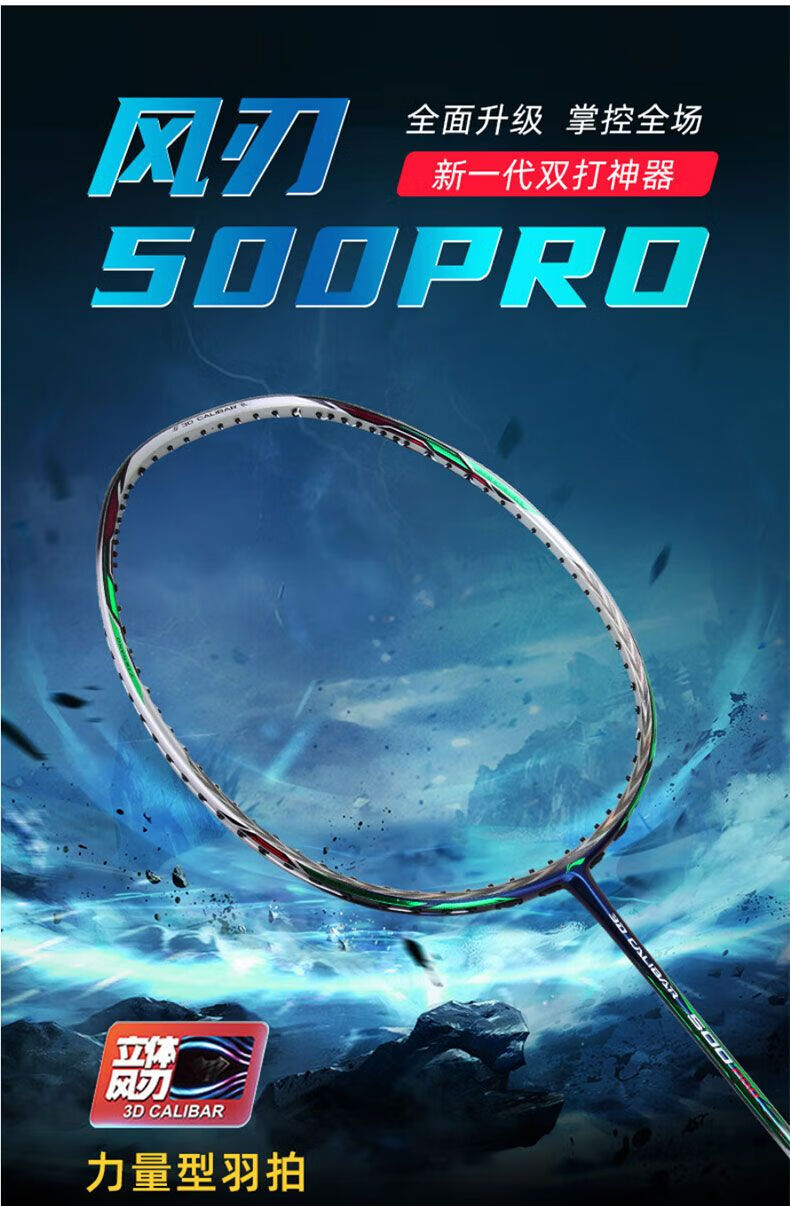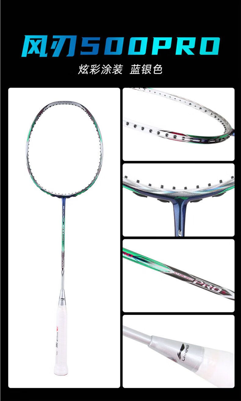 李宁(LI-NING) 李宁羽毛球拍风刃500PRO全碳素纤维进攻型风刃500比赛单拍 风刃500PRO 4U蓝银AYPT571-4 免费定制磅数(请联系客服)