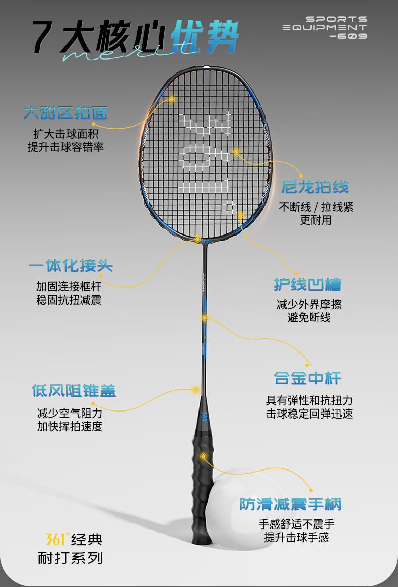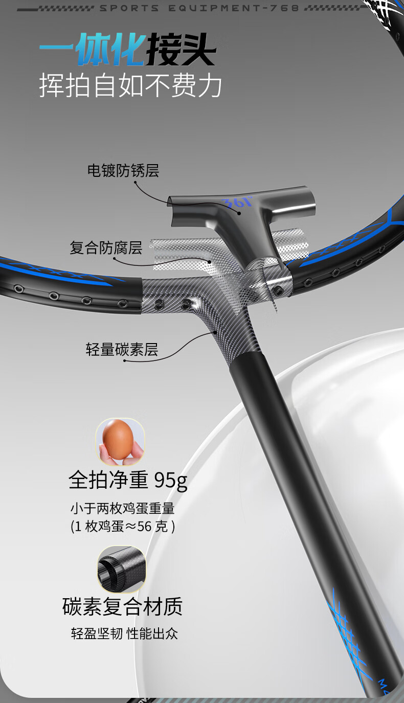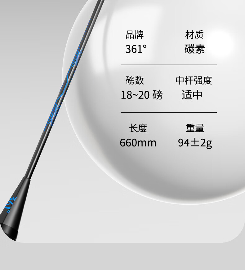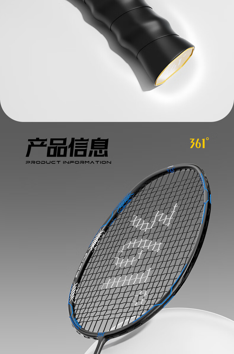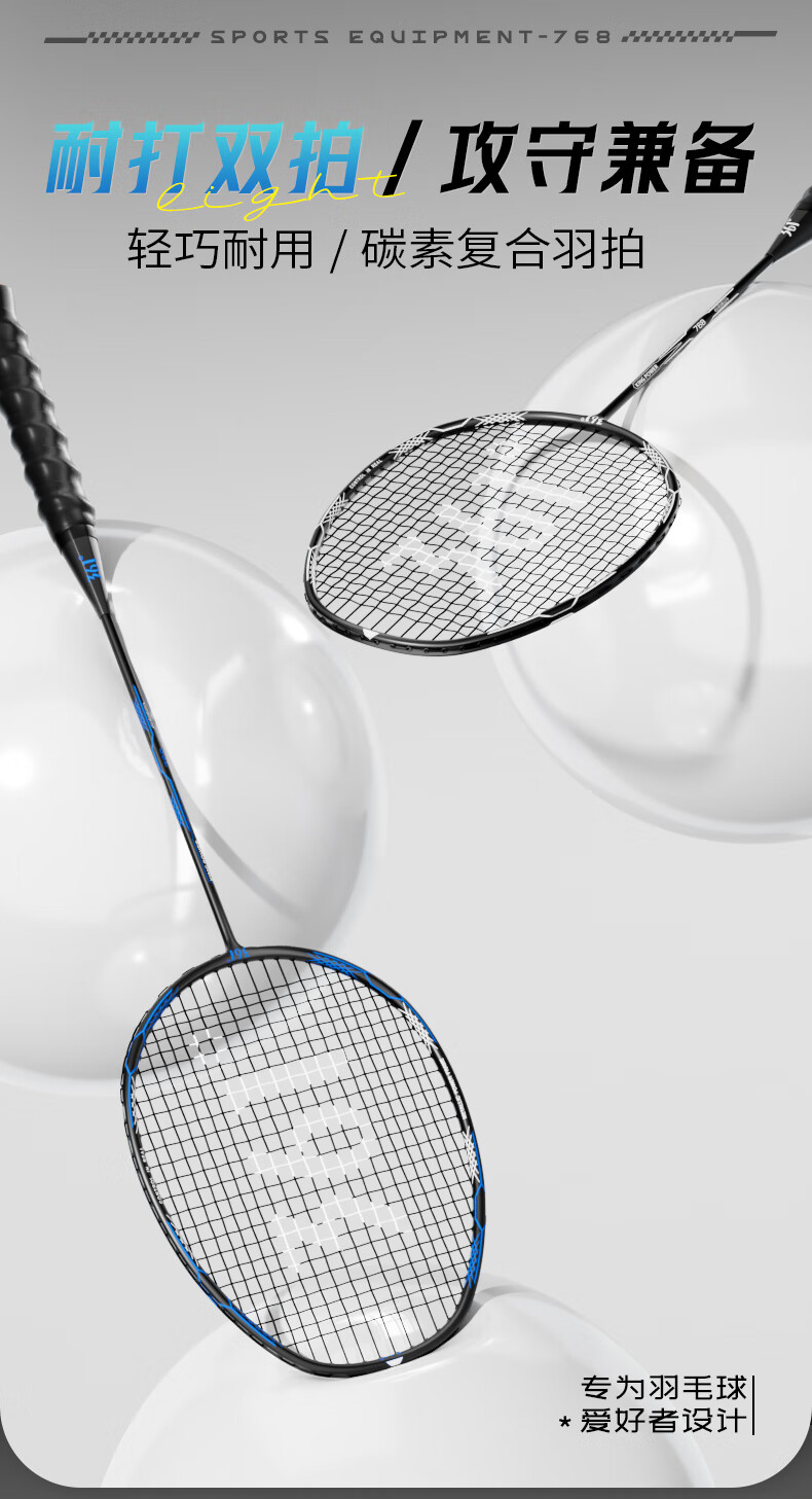 361°羽毛球拍碳素复合超轻耐打成人学生专业羽毛球拍对拍初学训练套装 碳素一体双拍【黑+蓝】+运动豪礼