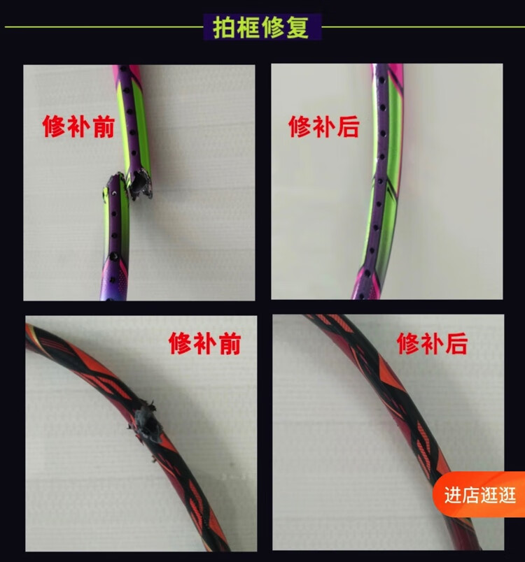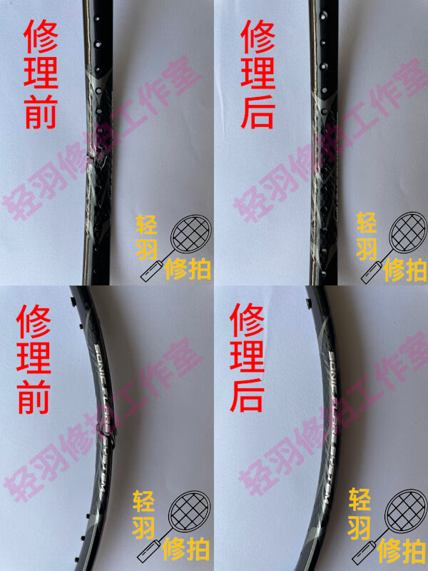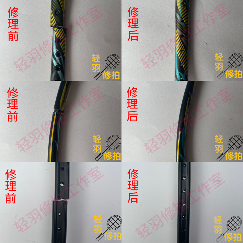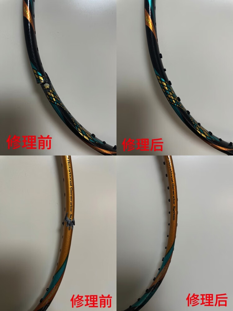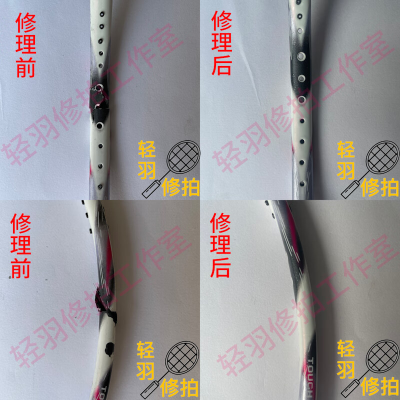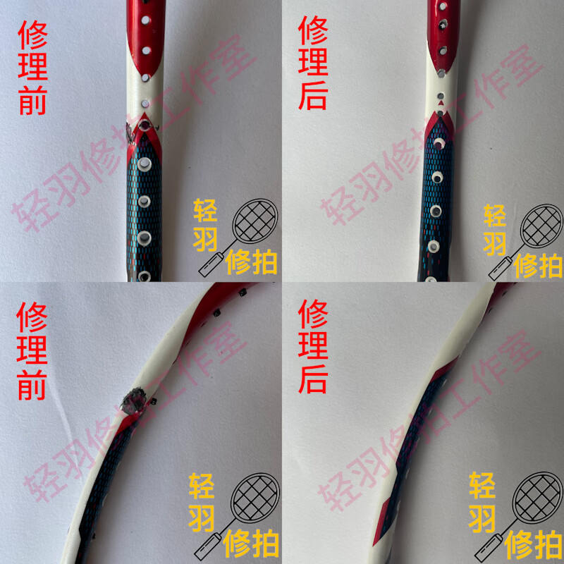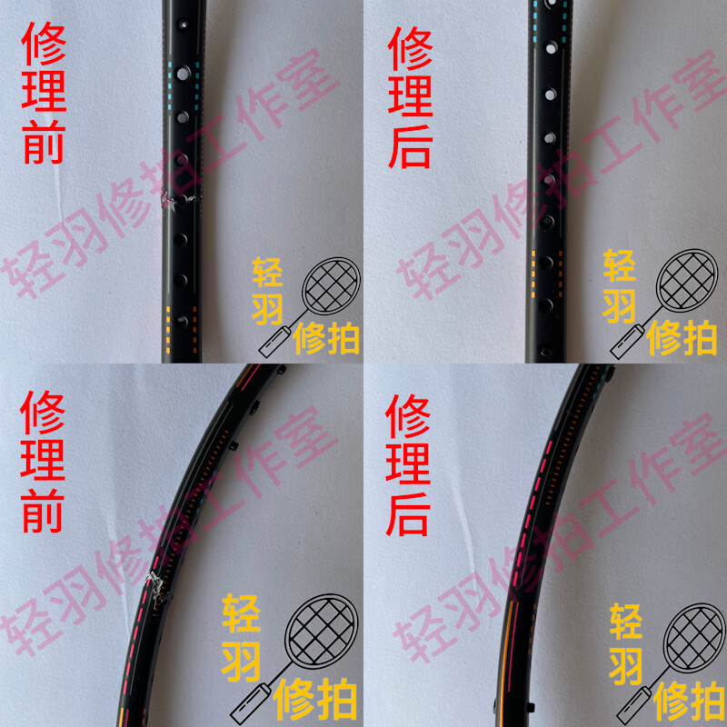 羽毛球拍修复 专业修拍 拍框整形 断裂 塌陷 手柄 补漆 涂装 一断口精修+断口补漆做花纹