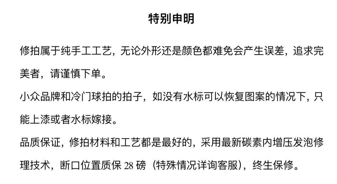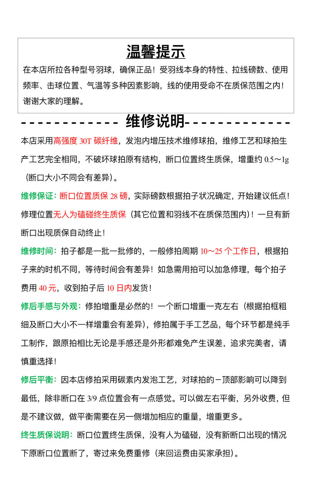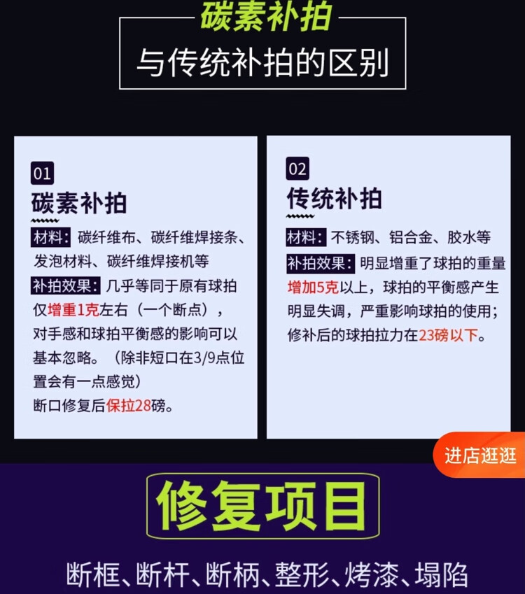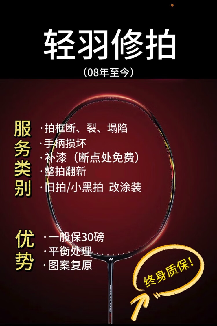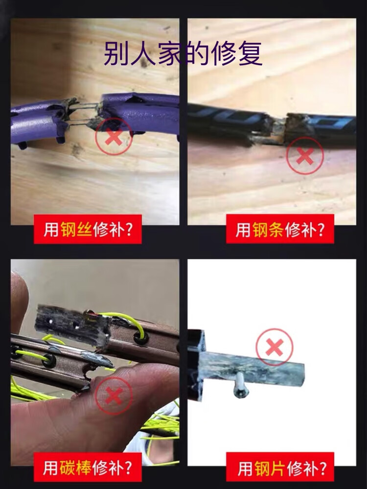 羽毛球拍修复 专业修拍 拍框整形 断裂 塌陷 手柄 补漆 涂装 一断口精修+断口补漆做花纹