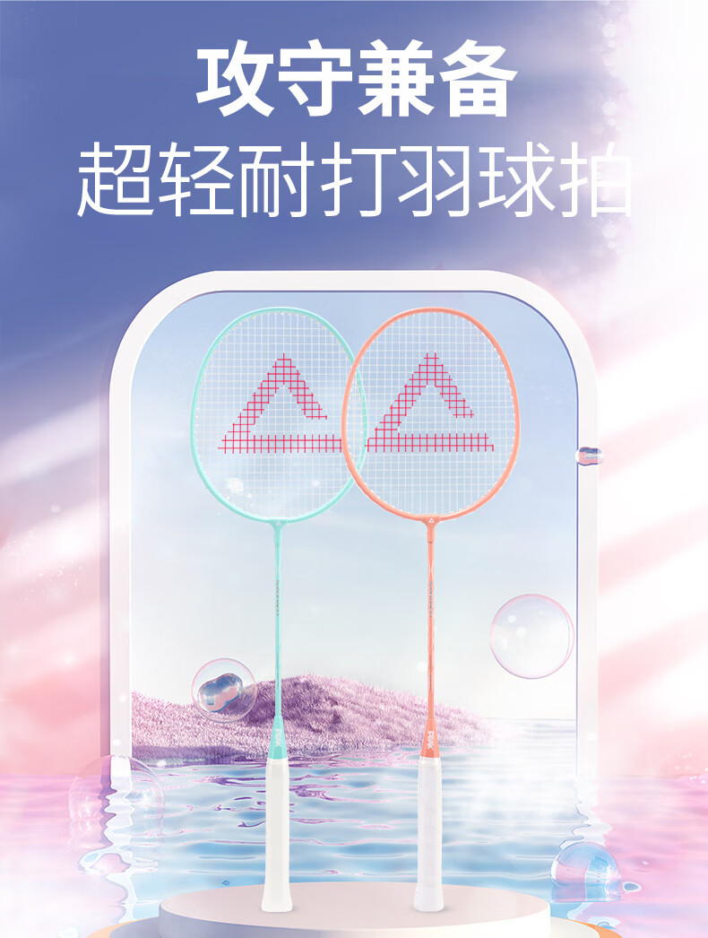 匹克羽毛球拍双拍初学合金复合进攻耐用学生对拍入门训练耐打羽拍 天蓝+羽白 羽毛球拍套装