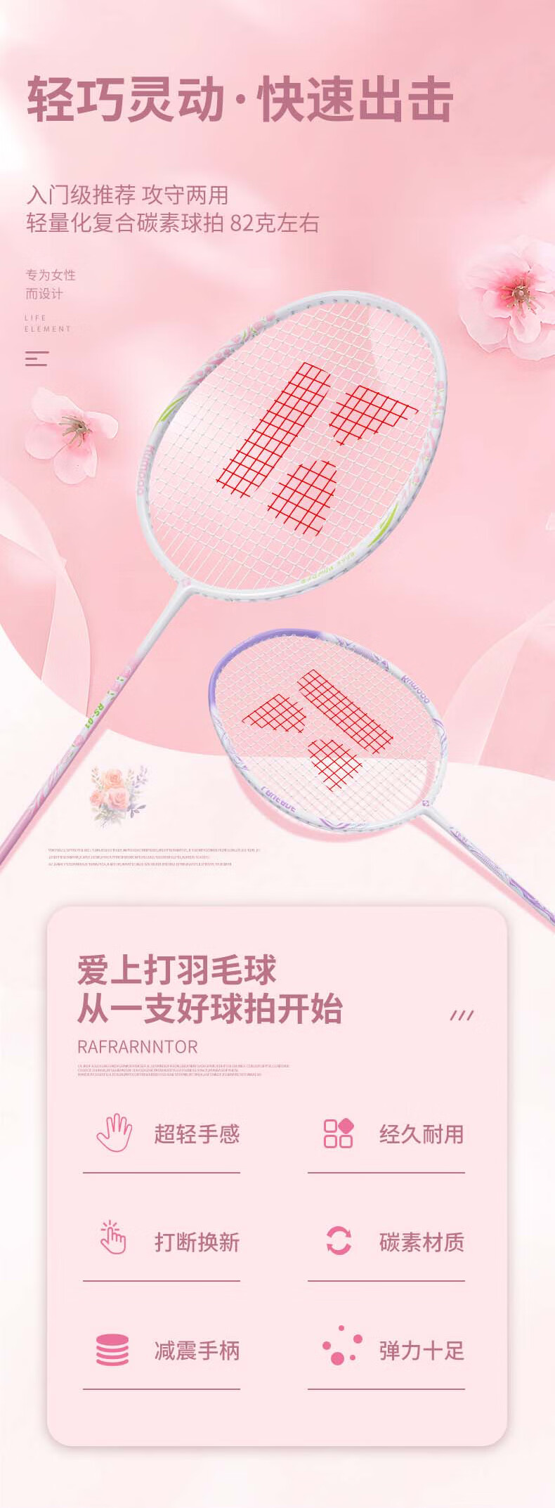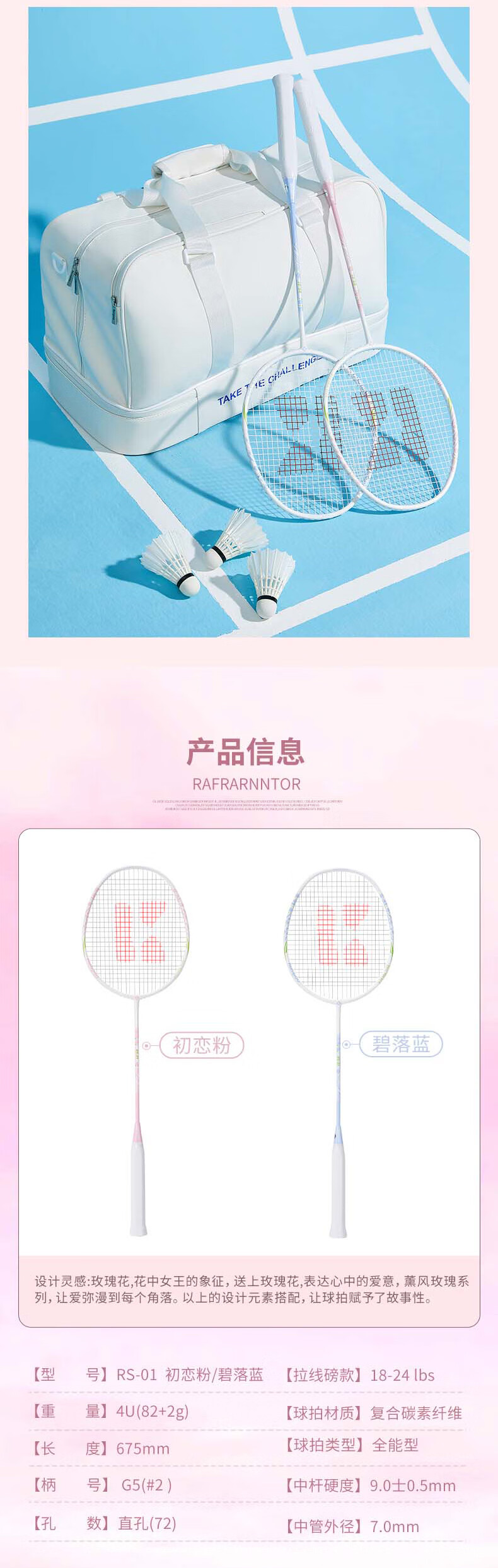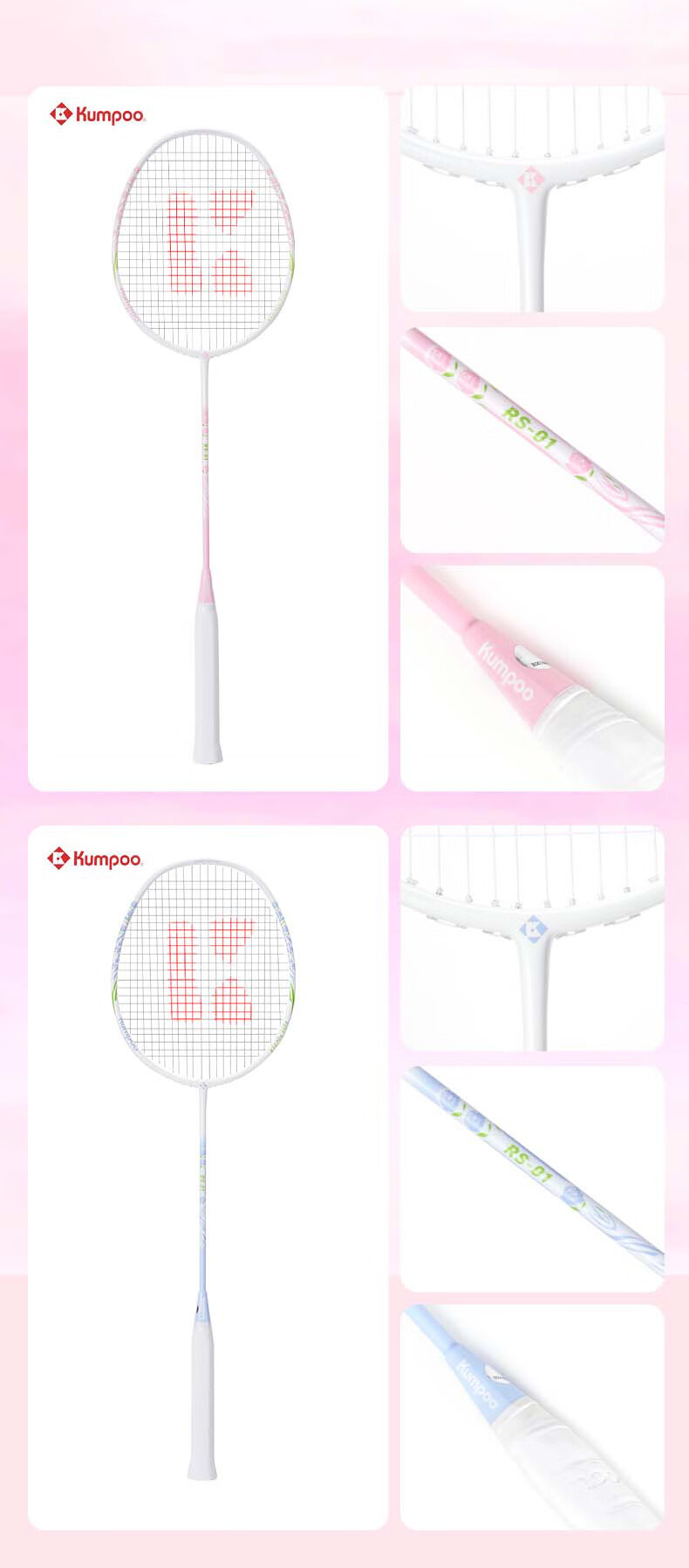 薰风(KUMPOO)新款碳素纤维羽毛球拍RS01对拍超轻熏风k520pro入门初学训练球拍 RS-01对拍 初恋粉+碧落蓝 成品拍