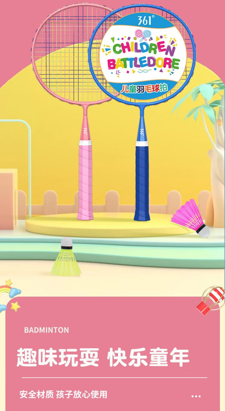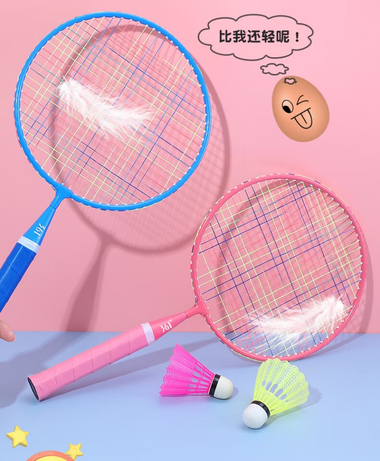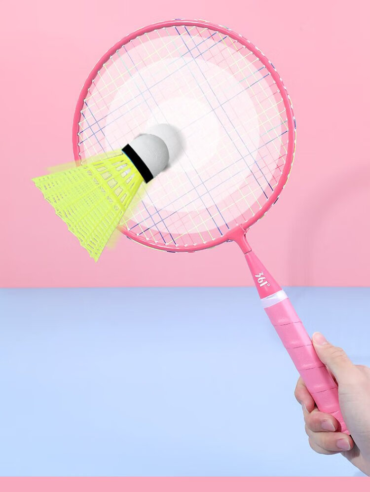 361 Raquette de badminton pour enfants pour la maternelle 3-12 ans élèves du primaire jouet cadeau parent-enfant interactif double raquette ensemble rose et bleu double raquette balle en nylon * 3 + sac de balle * 1