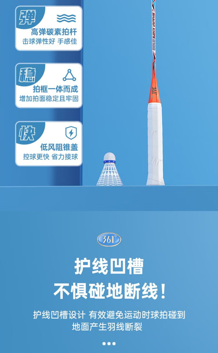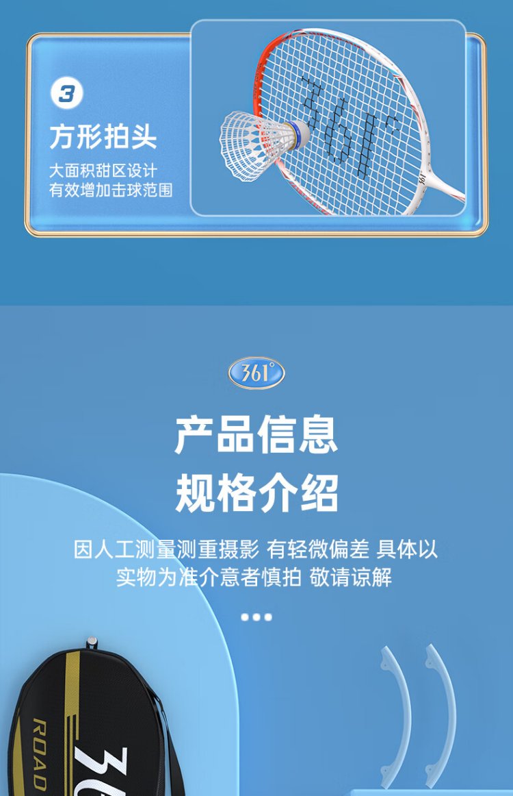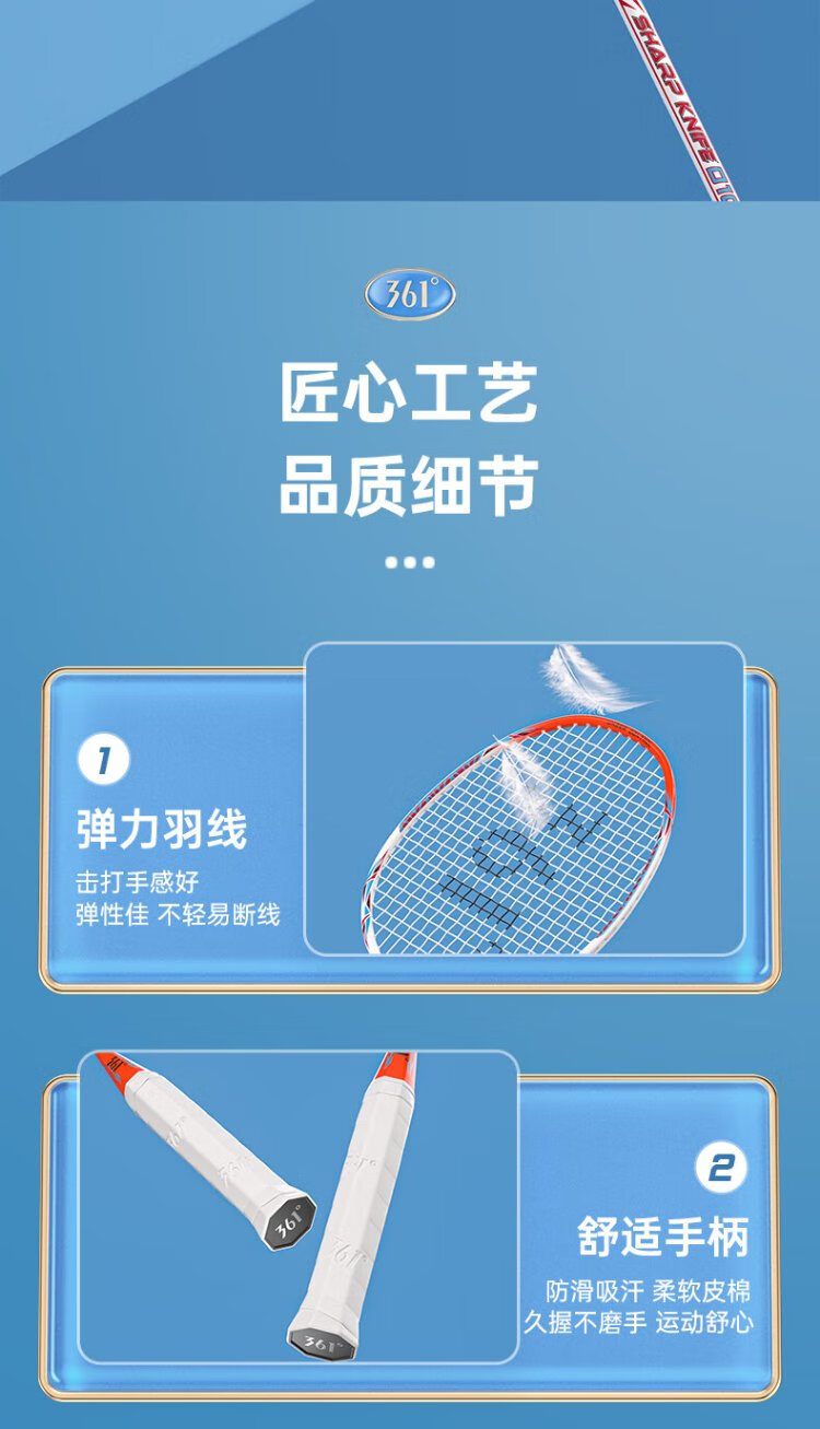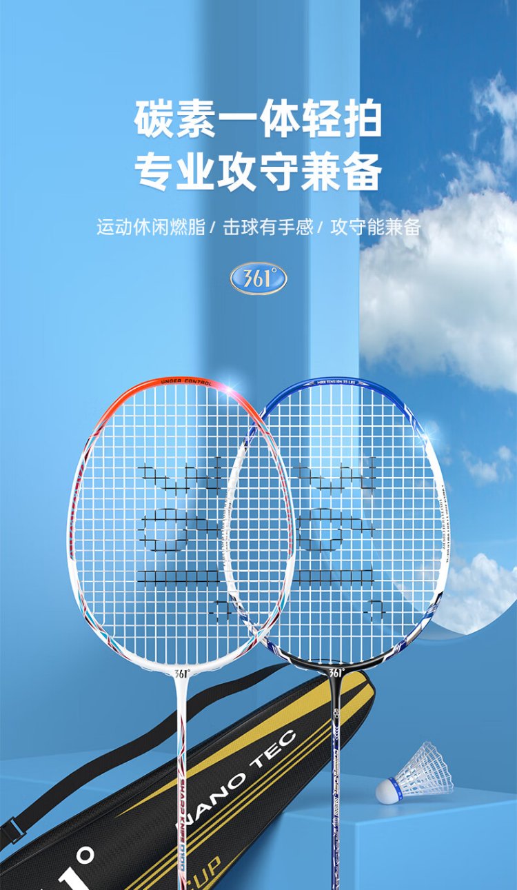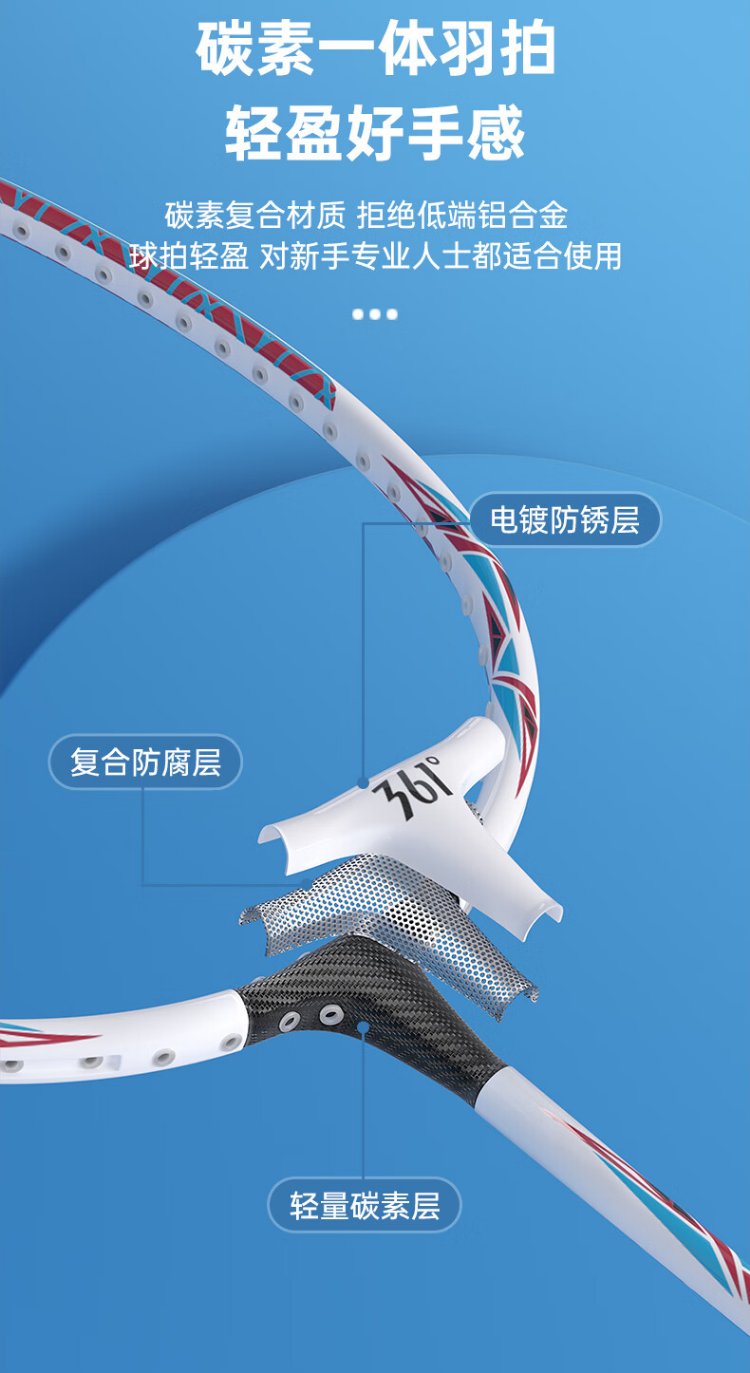 361°羽毛球拍对拍超轻碳纤维专业成人学生训练比赛耐打套装 【基础款】蓝色双拍(原装拍包) 成品拍
