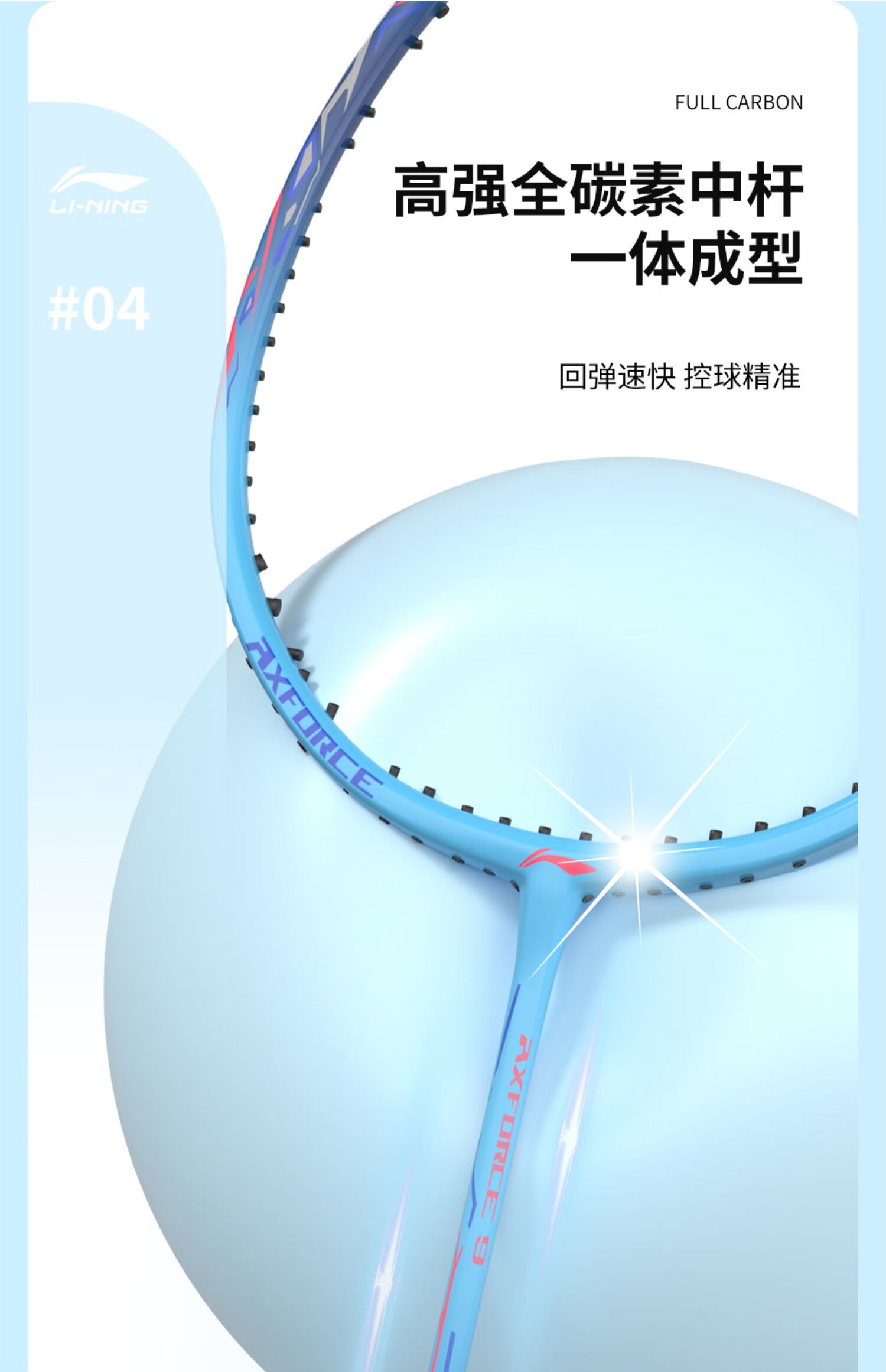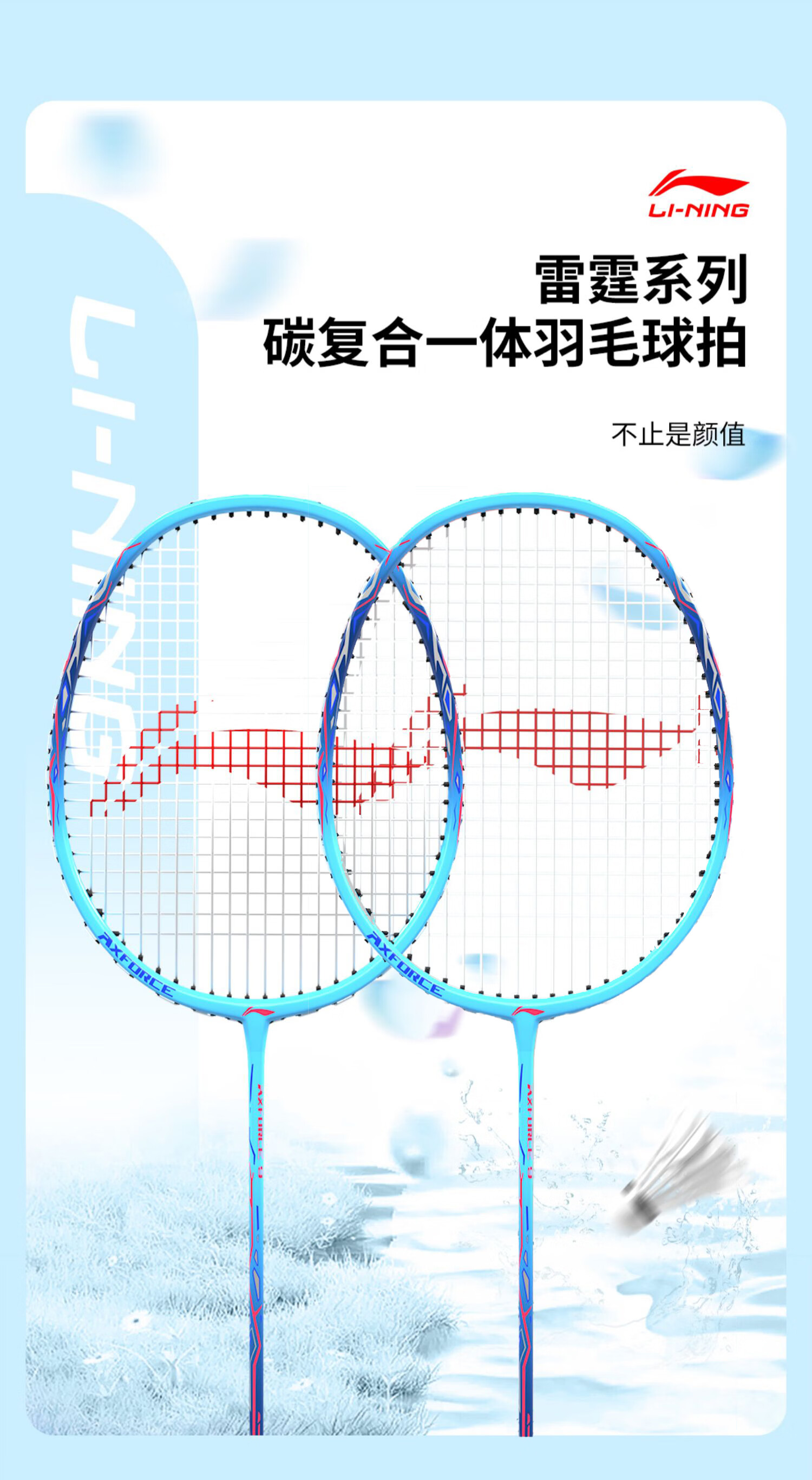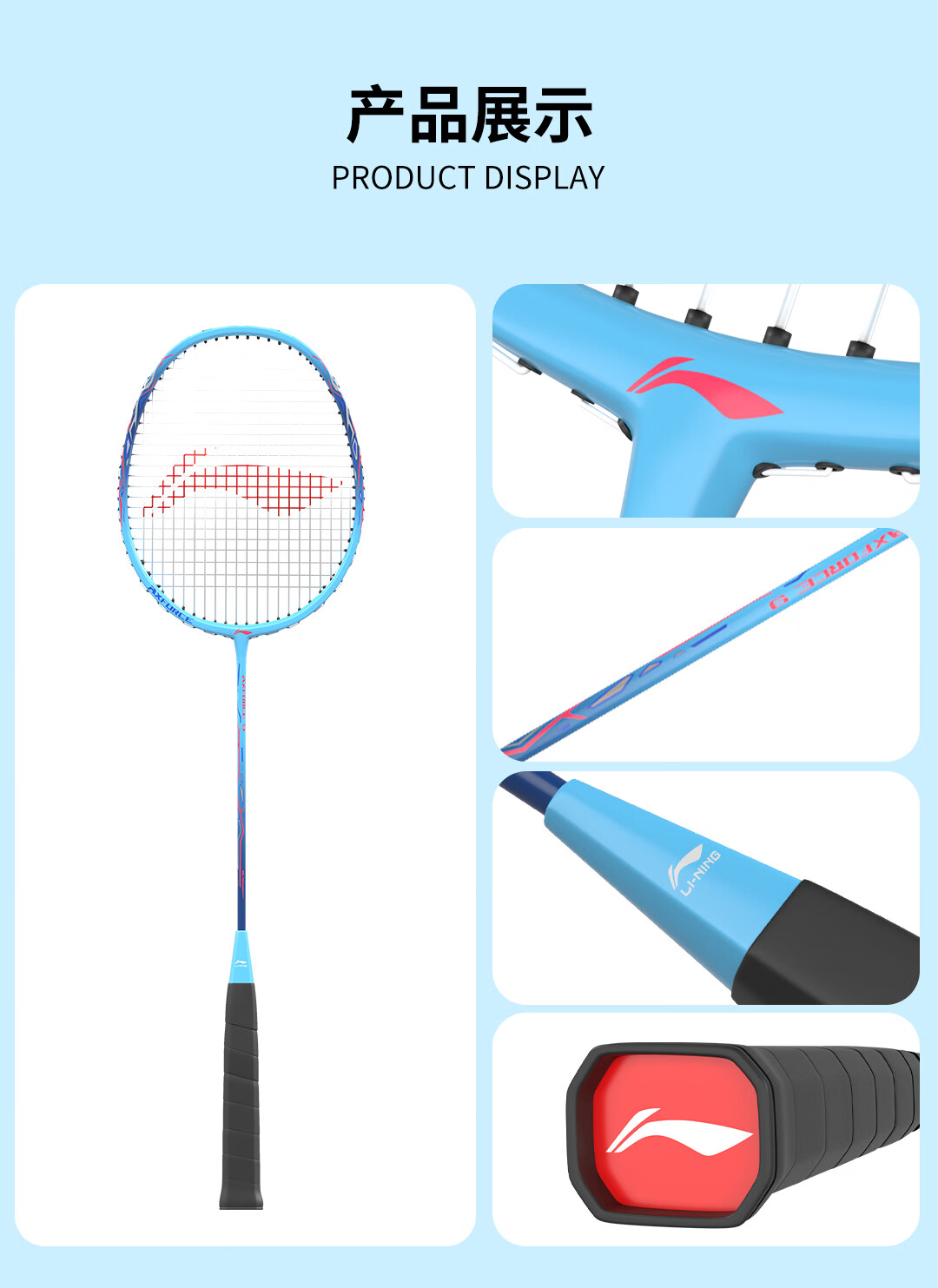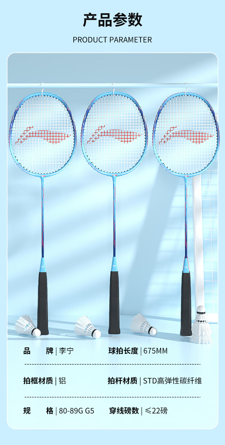 李宁正品羽毛球拍全碳素碳铝复合单双拍初学套装超轻高弹耐打入门球拍 天蓝羽毛球单拍【2尼龙球+手胶】