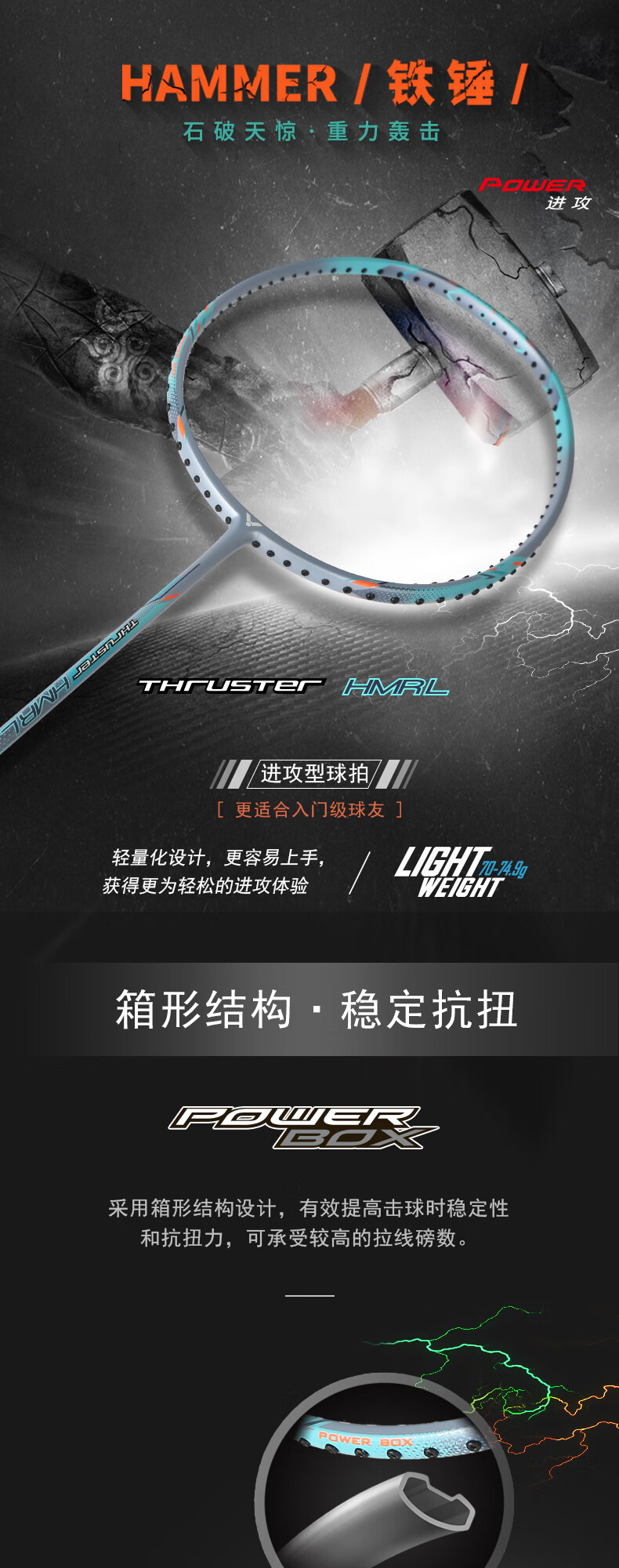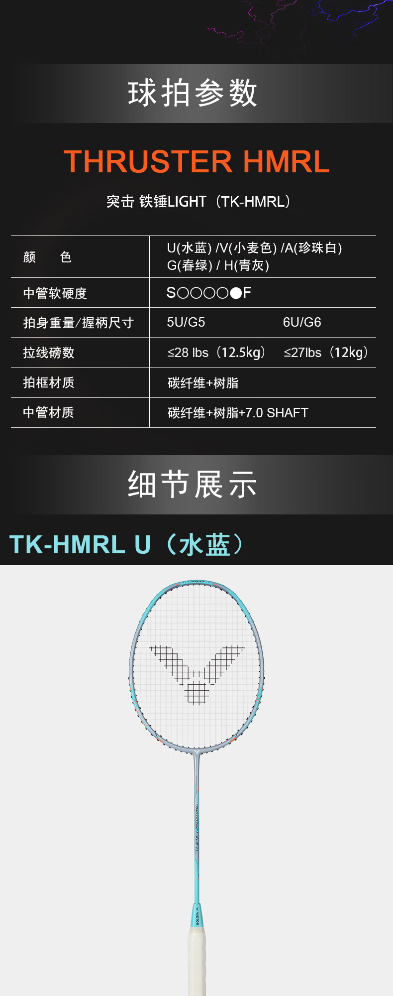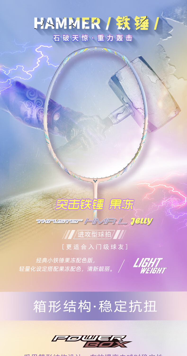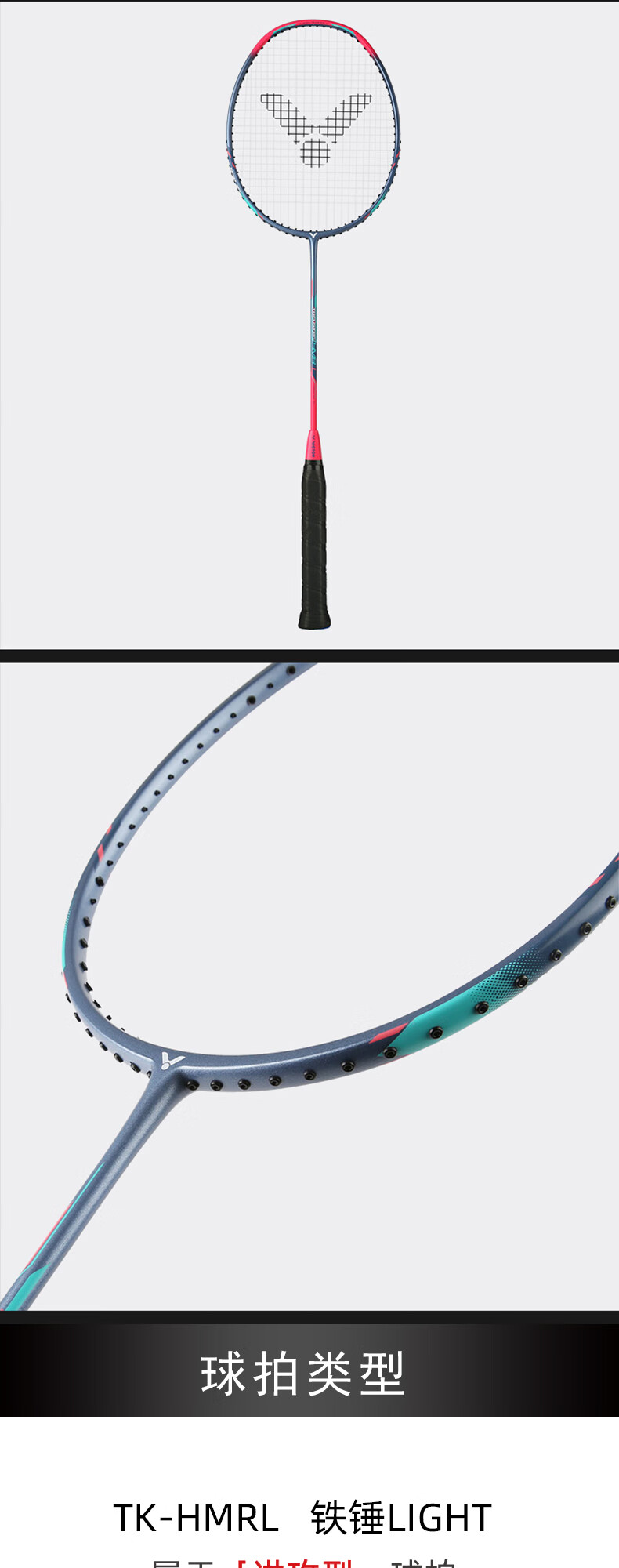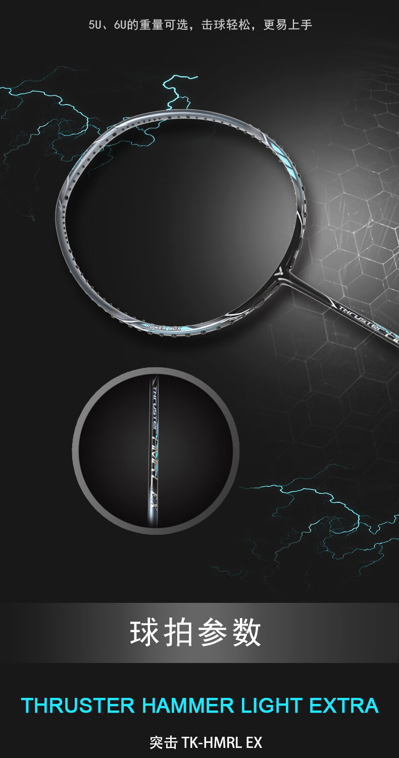 威克多(VICTOR)羽毛球拍单拍 全碳素入门级进攻型轻量拍TK-HMR L小铁锤EX球拍 小铁锤EX A云峰白-5U 已穿线