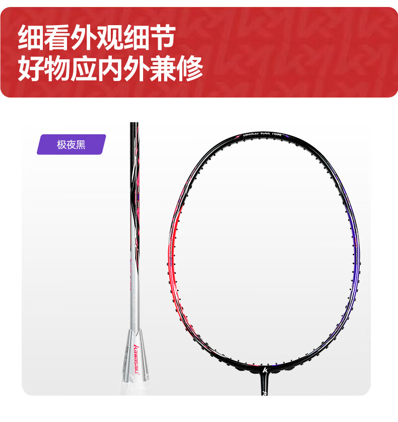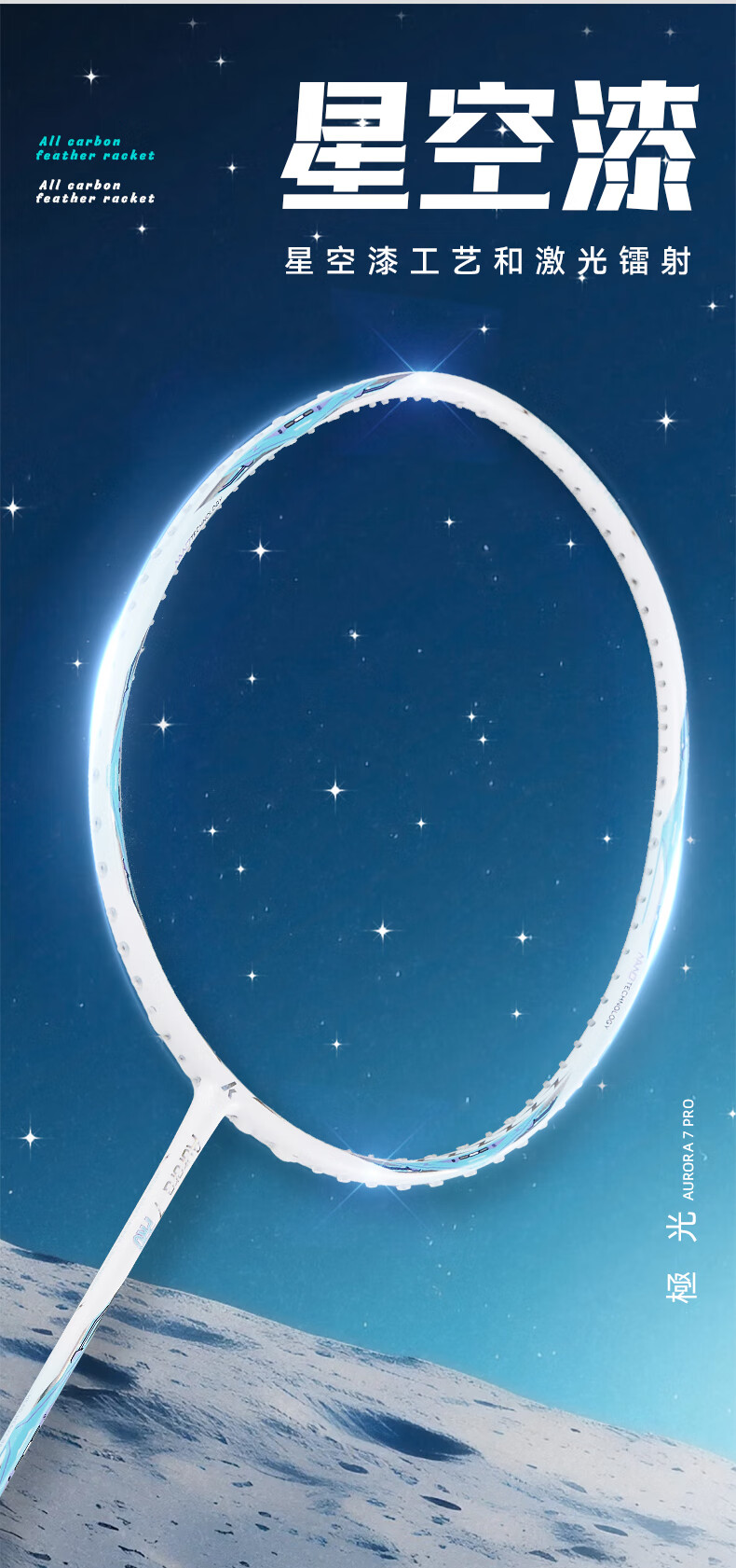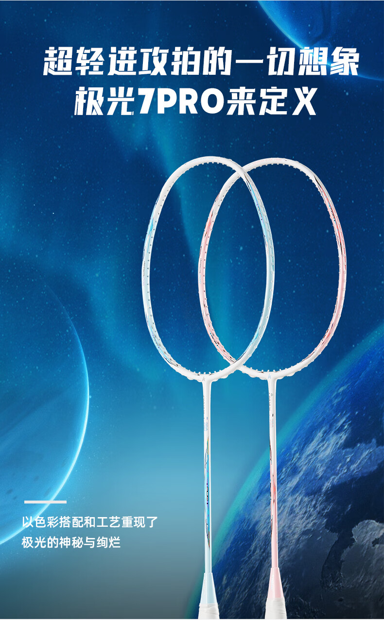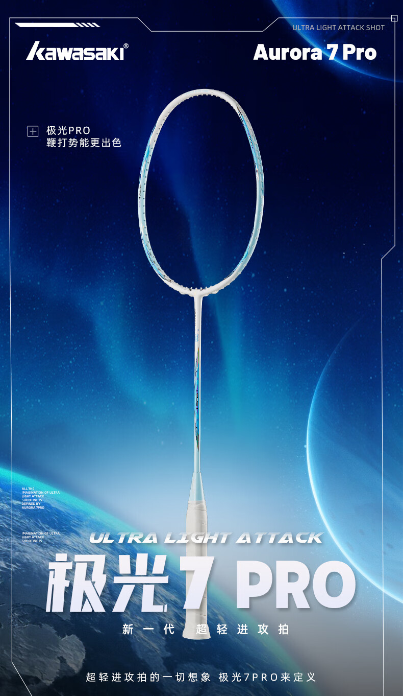 川崎极光7pro羽毛球拍全碳素超轻5u进阶进攻耐高磅专业训练比赛单拍 极光7pro-星闪蓝-冰蓝线 单拍 26磅(业余/羽坛小能手)