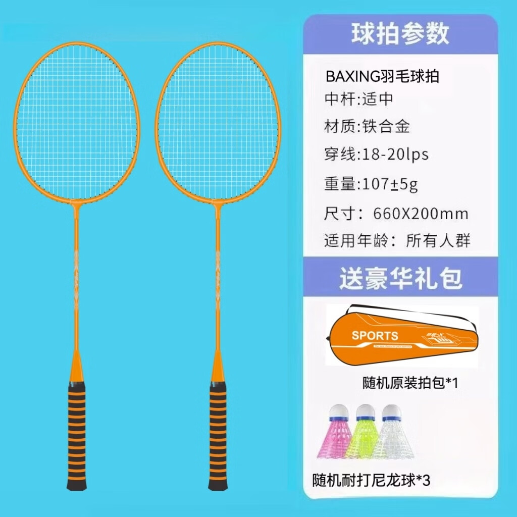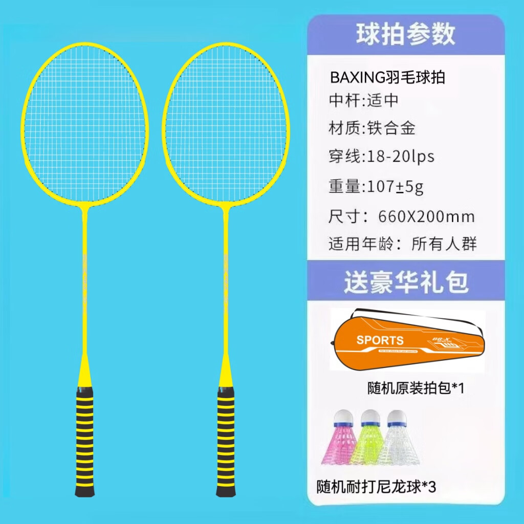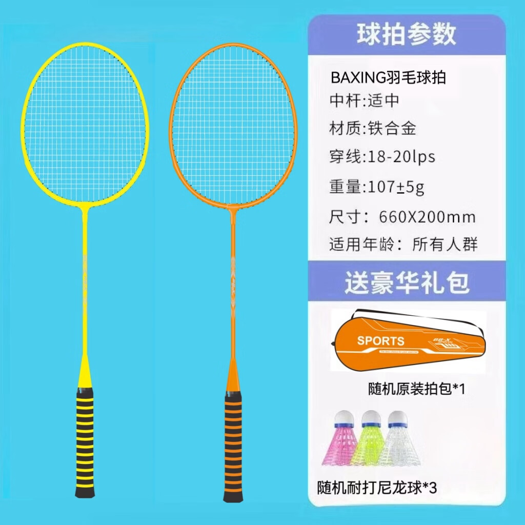 羽毛球拍成人正品2支男女情侣亲子儿童学生超轻海绵手柄套装 耐打尼龙羽毛球2个【随机颜色】