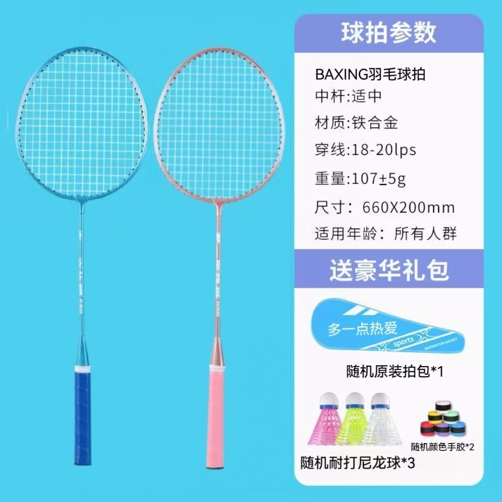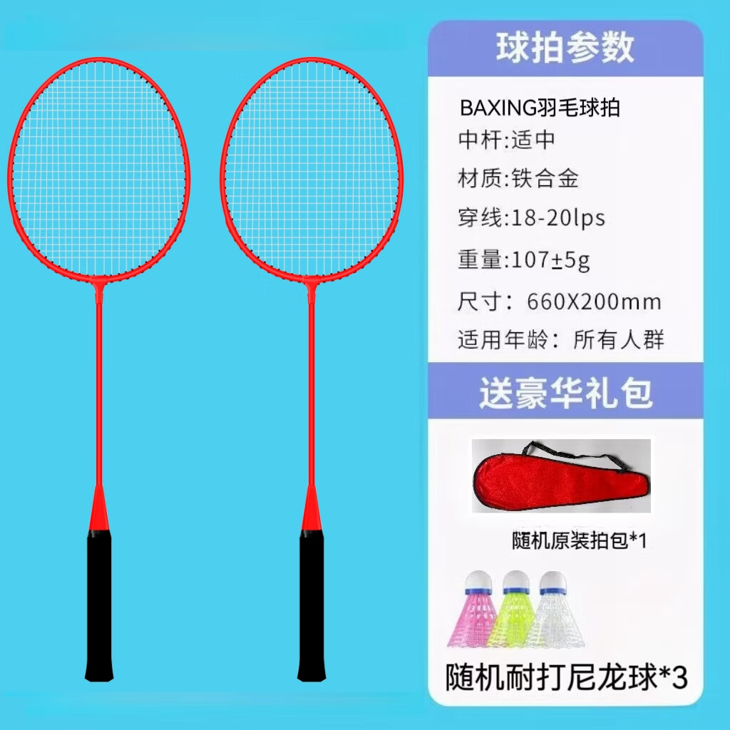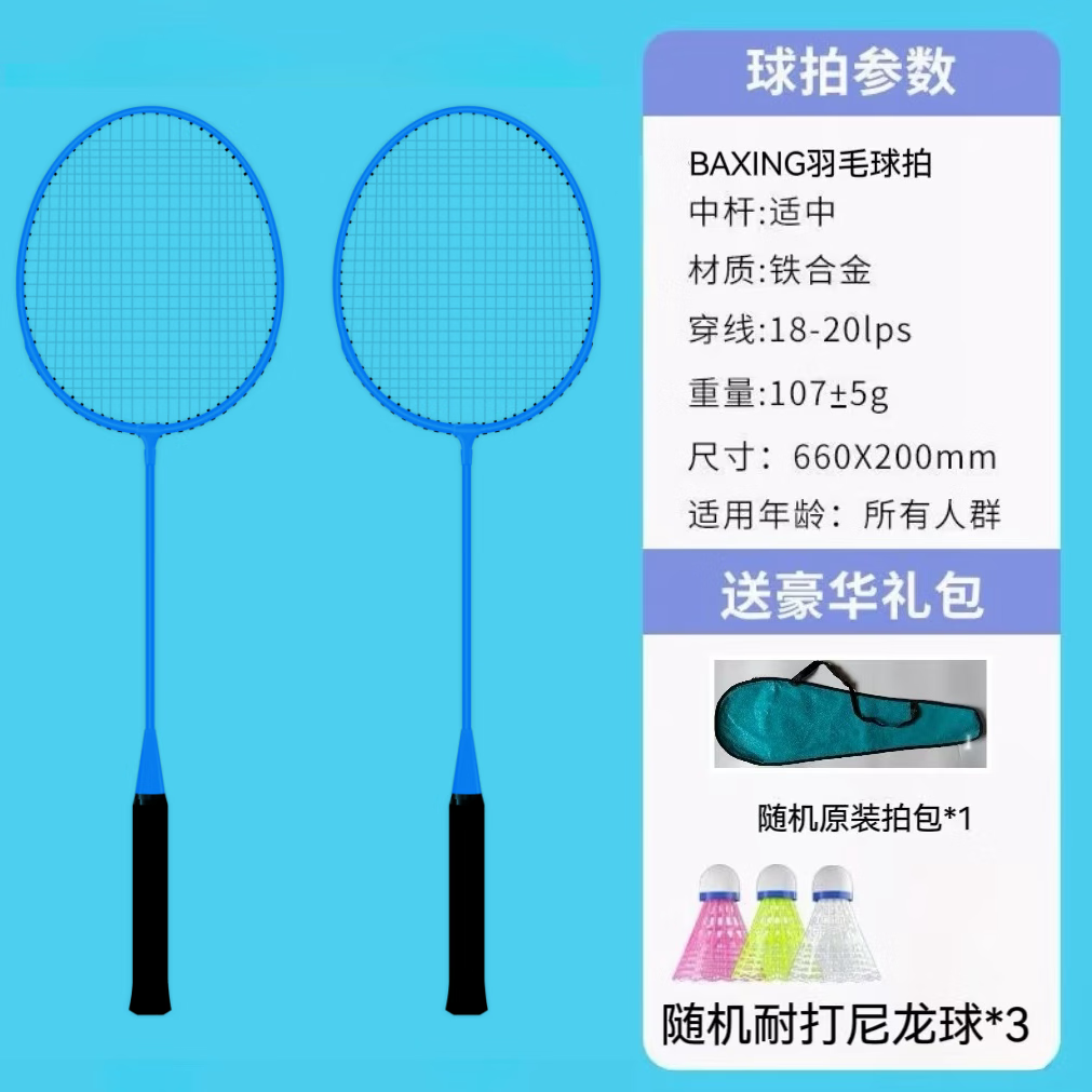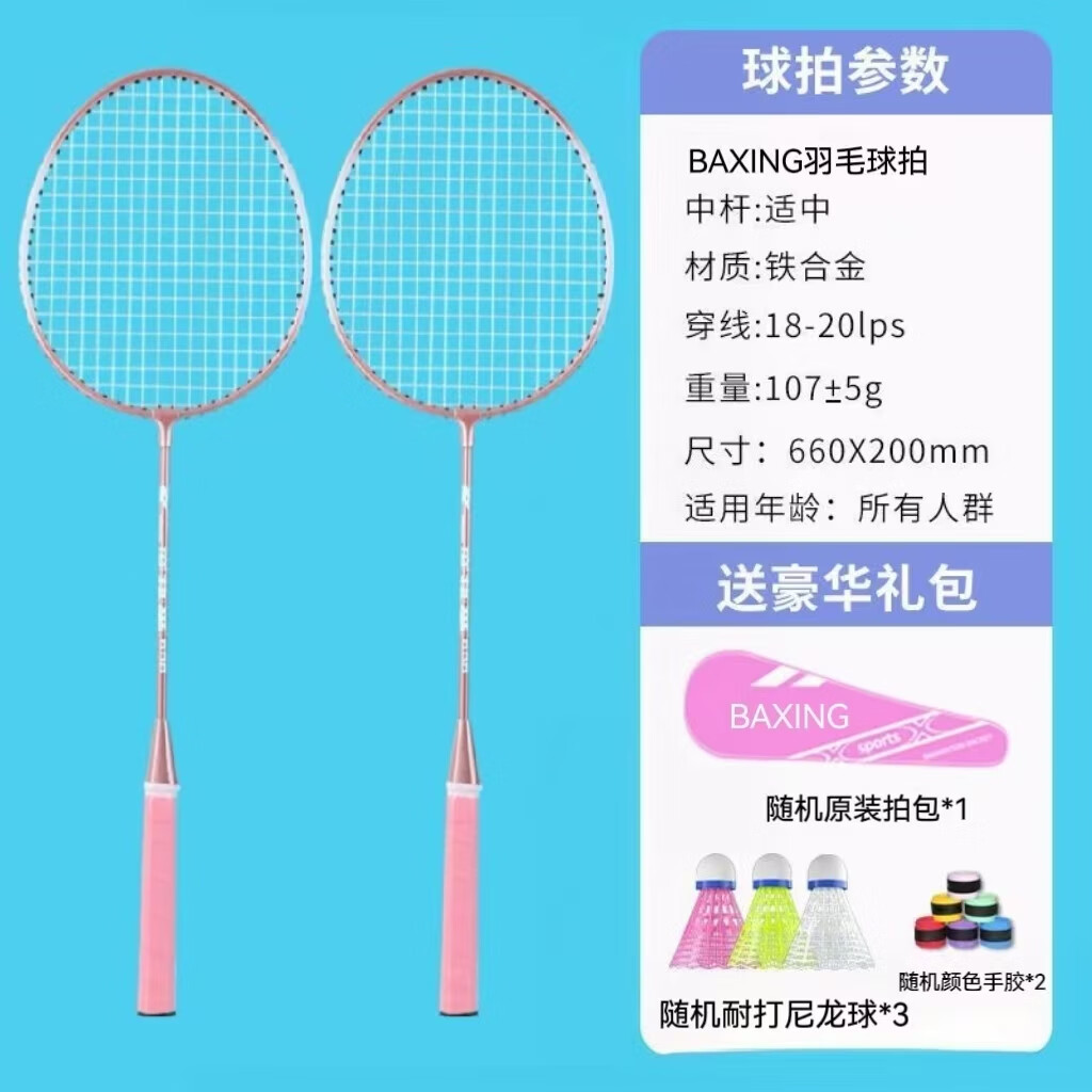 羽毛球拍成人正品2支男女情侣亲子儿童学生超轻海绵手柄套装 耐打尼龙羽毛球2个【随机颜色】