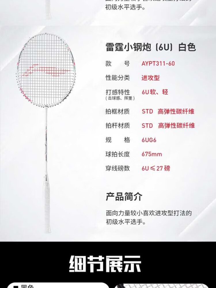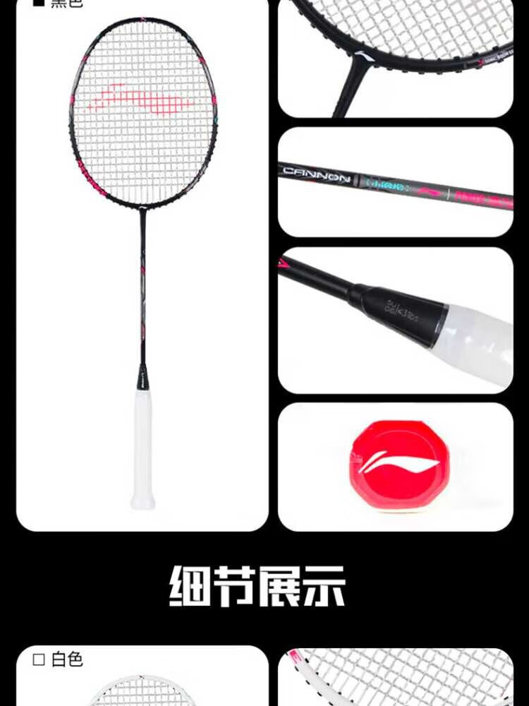 李宁雷霆小钢炮羽毛球拍进攻型碳素纤维高磅超轻男女新手专业训练单拍 【奥运冠军推荐】小钢炮黑色4U 【默认穿线26磅 可选磅数】