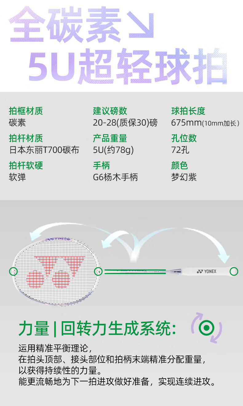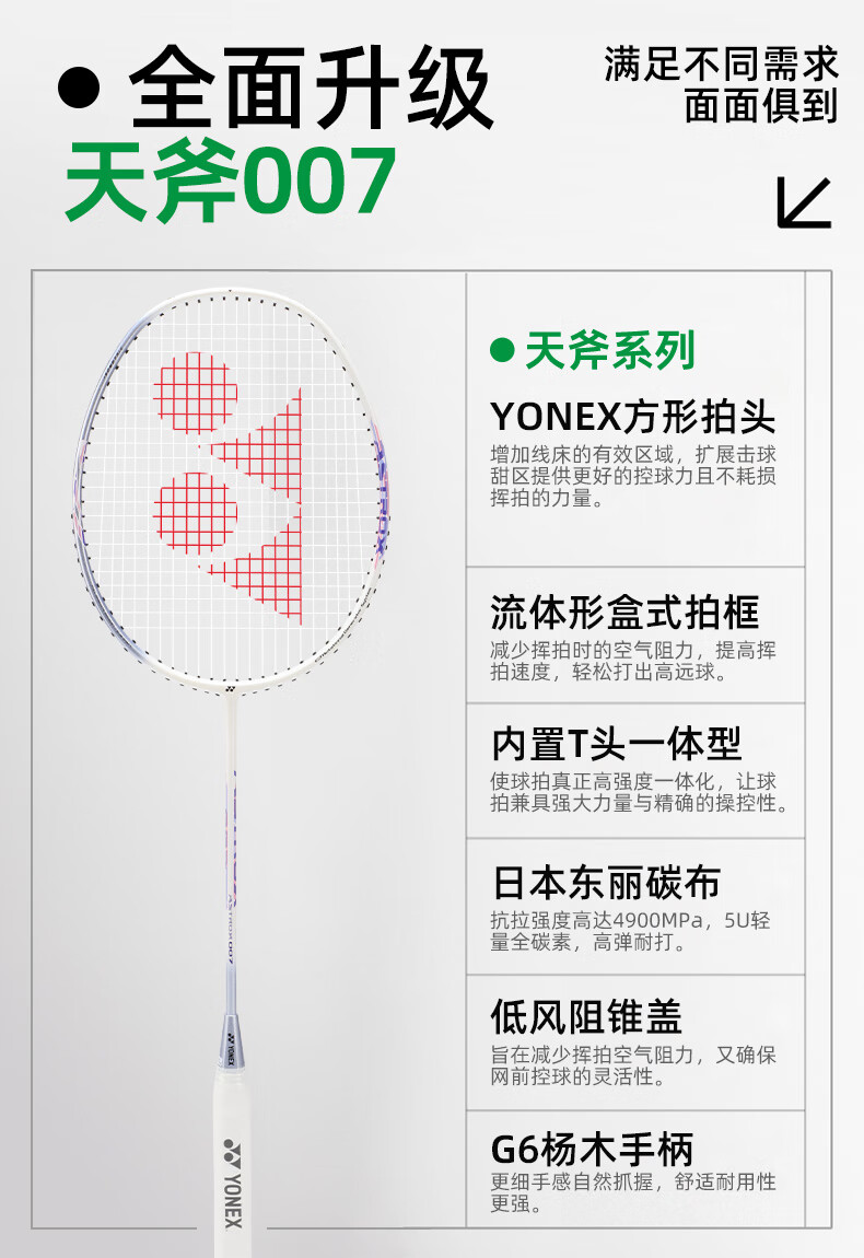 YONEX尤尼克斯羽毛球拍单拍超轻耐打全碳素纤维天斧007新品进攻型羽拍 【店长推荐】单拍全碳素 质保30磅 已穿线26磅(附赠手胶+拍套)