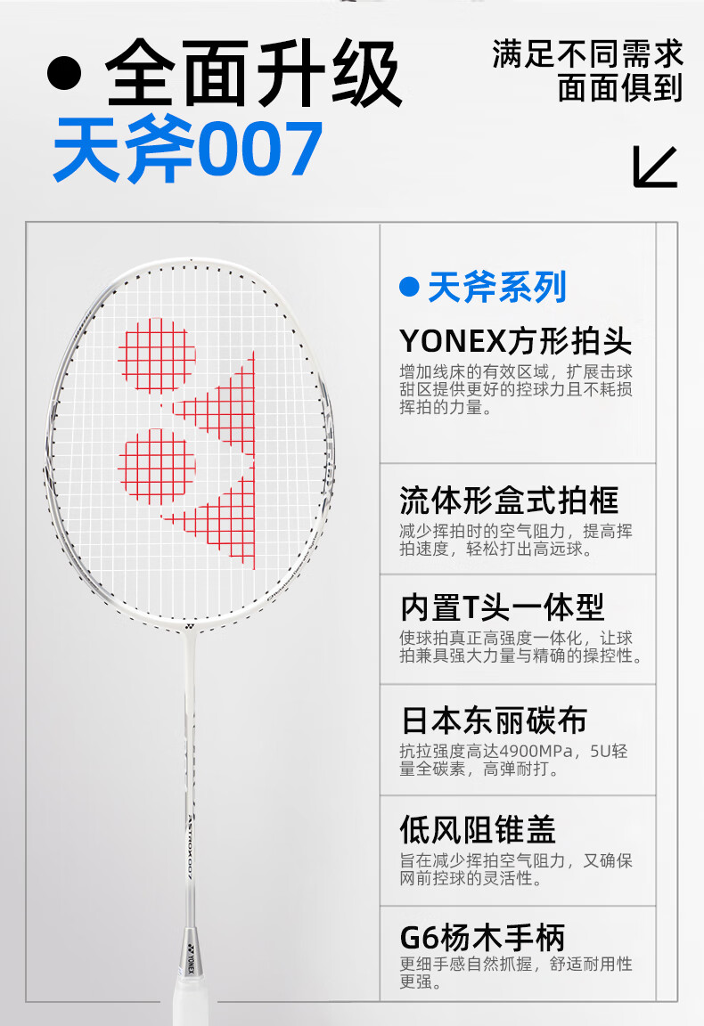 YONEX尤尼克斯2025新款羽毛球拍单拍天斧AX007全碳素超轻yy专业进攻拍 哑光白ASTROX007全碳素 成品拍5UG6 (指定磅数联系客服)