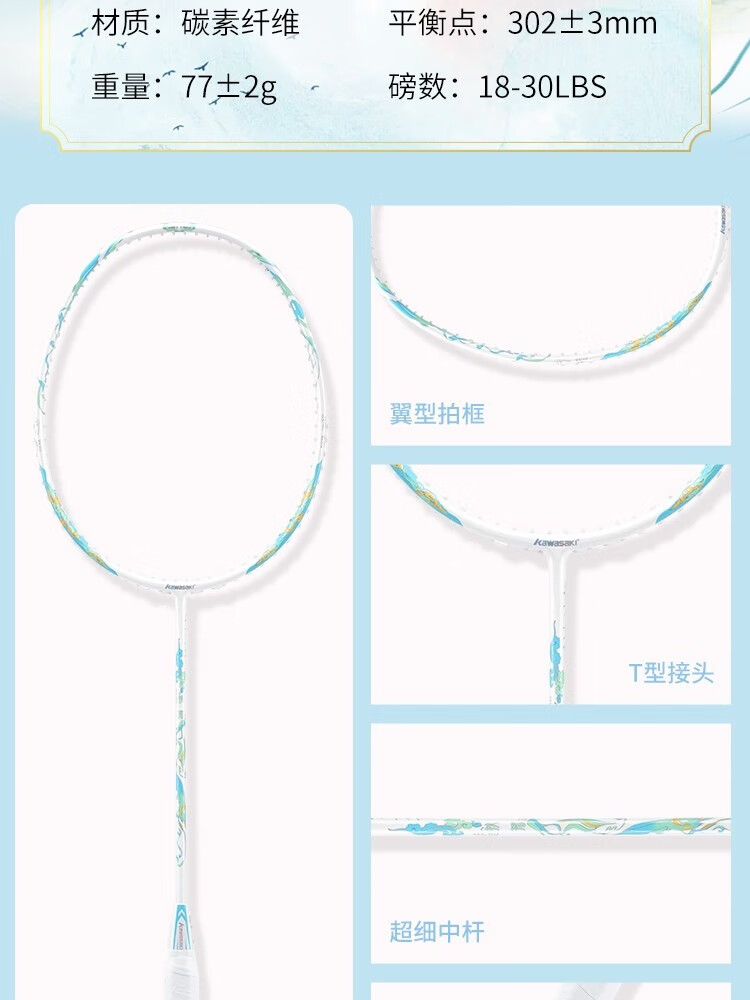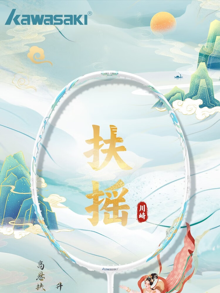 KAWASAKI川崎羽毛球拍新款国风扶摇全碳素5U超轻高颜值高端礼盒款官方正品 蓝色礼盒款【扶摇蓝-蓝线】 24磅(标准磅数)2手胶1挂件1拍袋