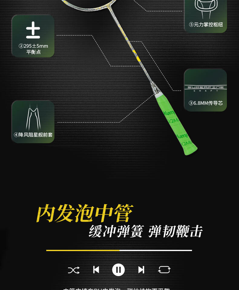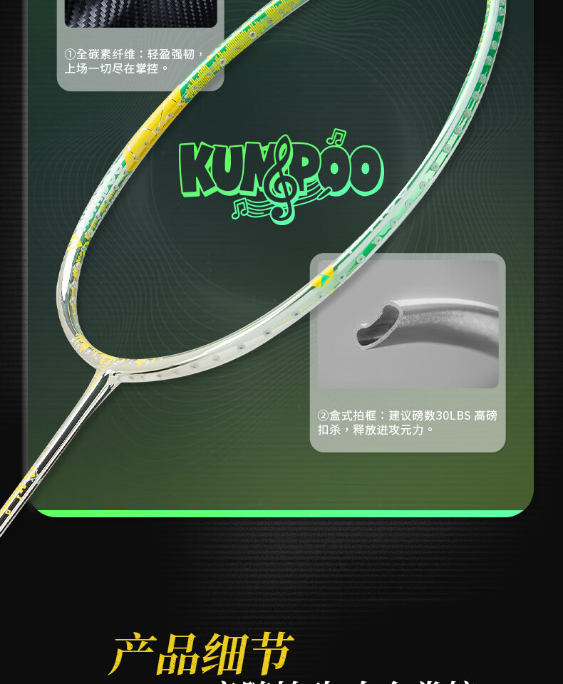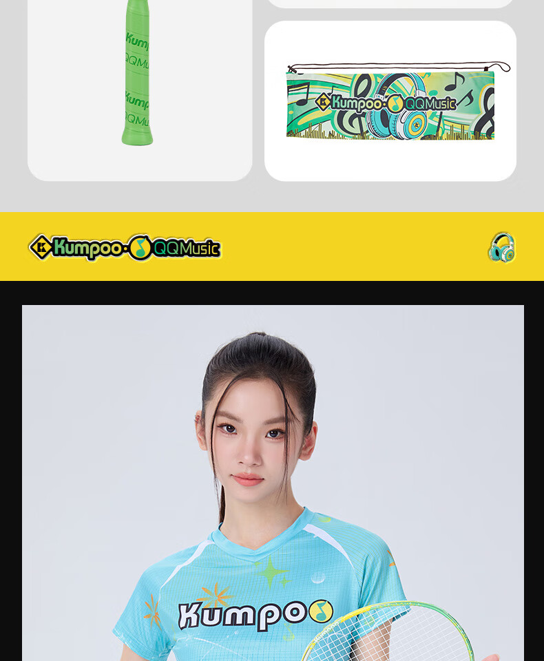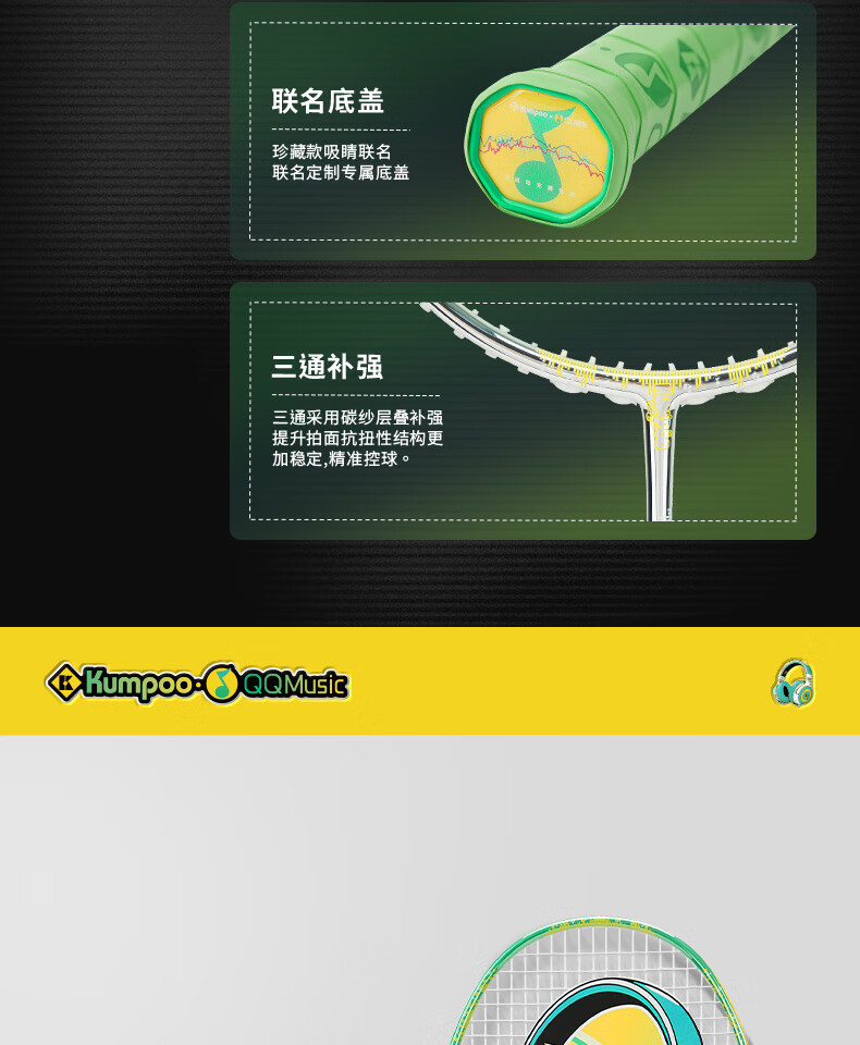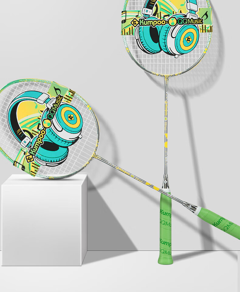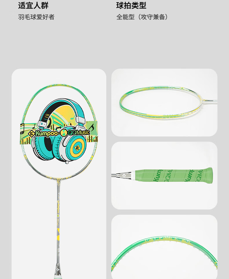 薰风(KUMPOO)【QQ音乐联名款】羽毛球拍全碳素纤维4U超轻音爆全能型单拍熏风 银绿 成品拍