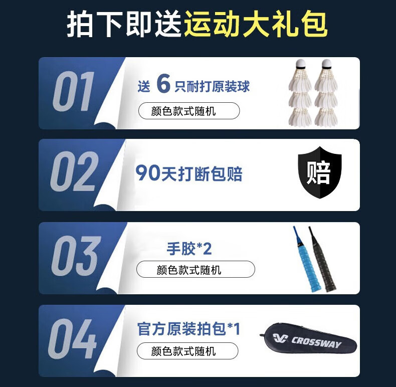 克洛斯威(CROSSWAY)羽毛球拍双拍碳素复合一体拍均衡之刃进攻型全碳纤维超轻单双对拍 [碳素复合新手款]黑色+6球+2手胶