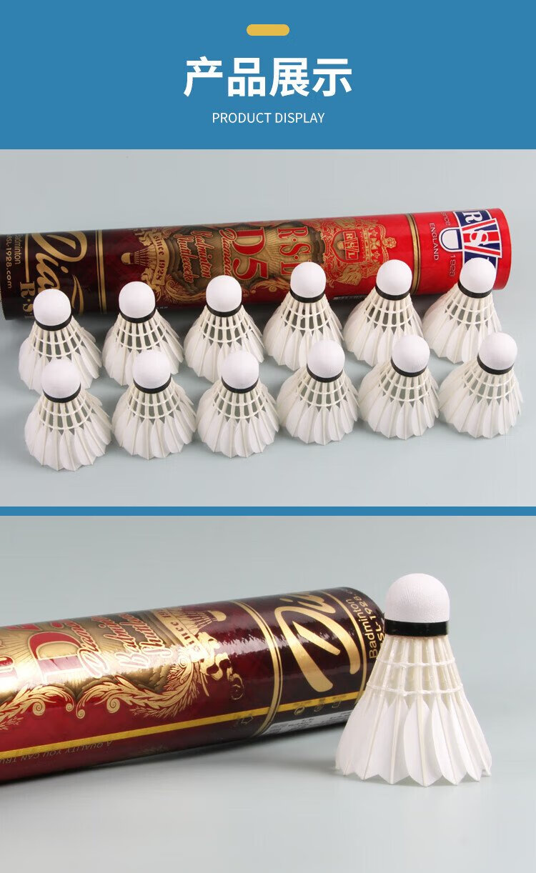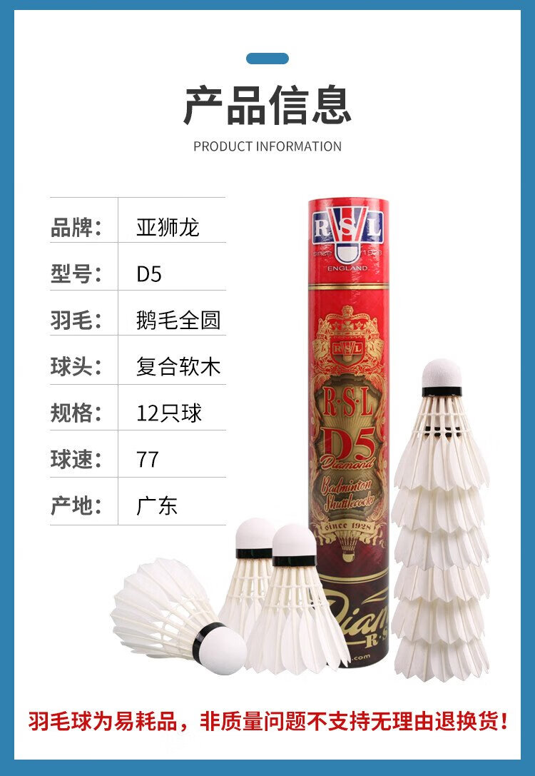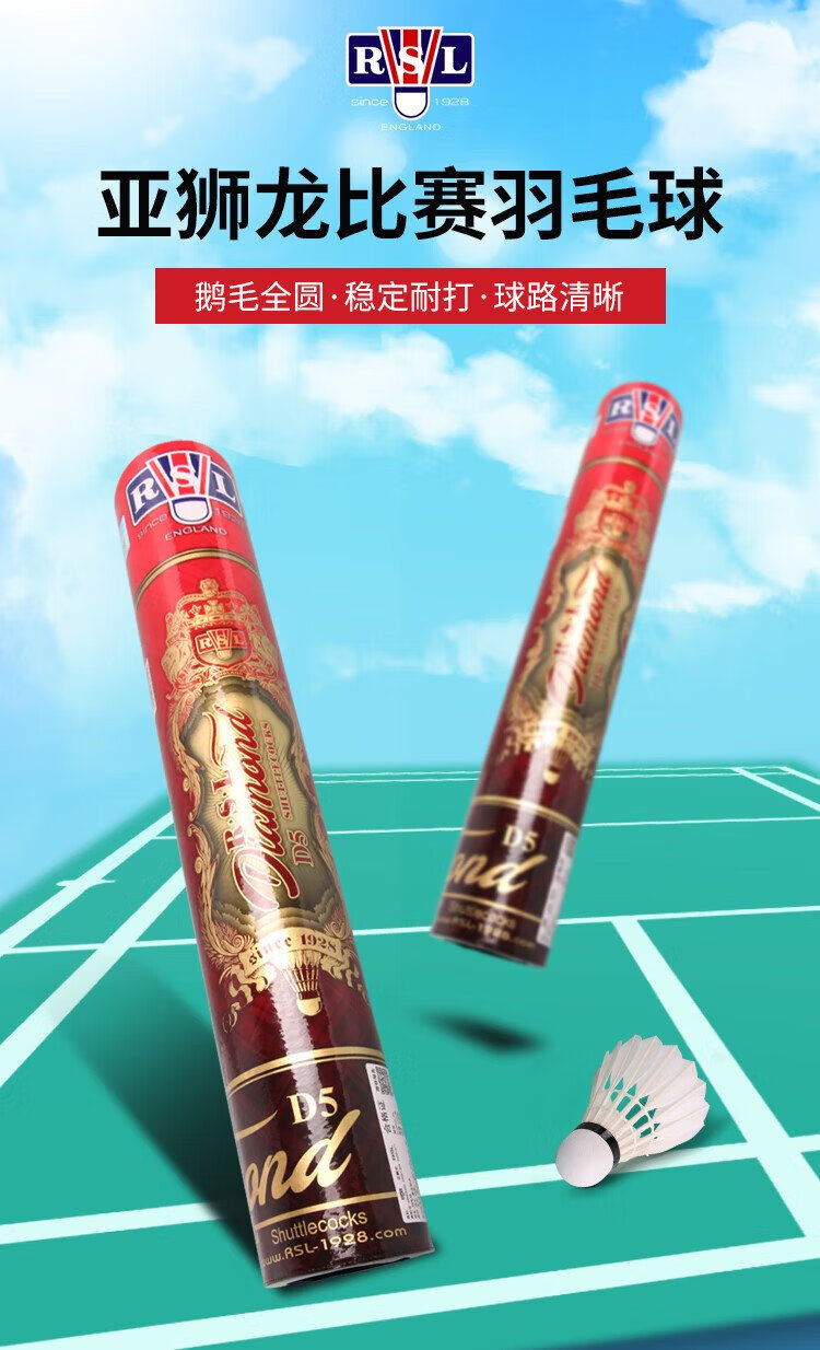 亚狮龙(RSL)羽毛球D5鹅毛专业比赛耐打稳定77速1桶12只装