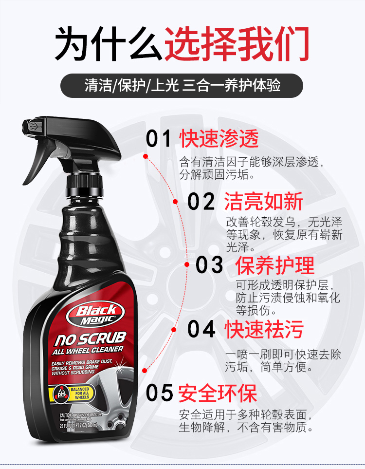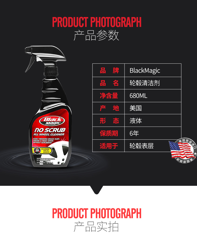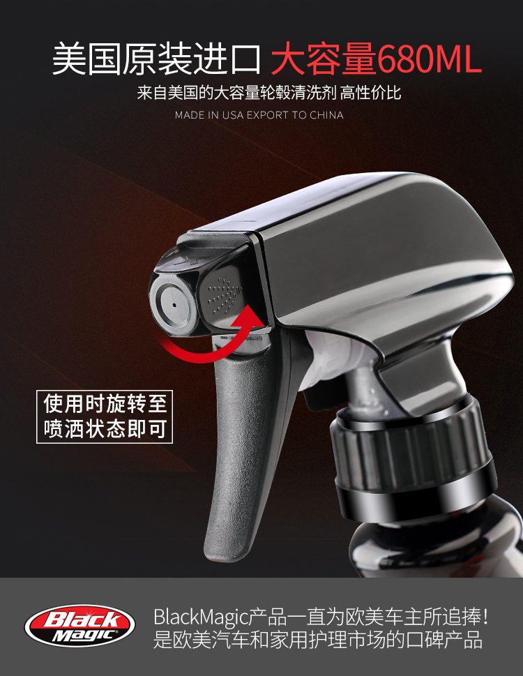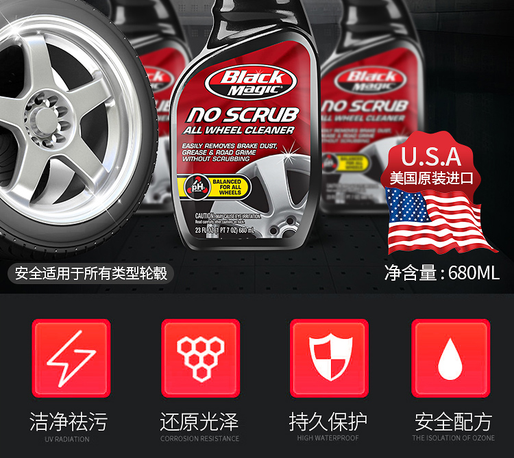 BLACK MAGIC wheel cleaner iron powder remover cleaner does not damage tires imported from the United States 680ml