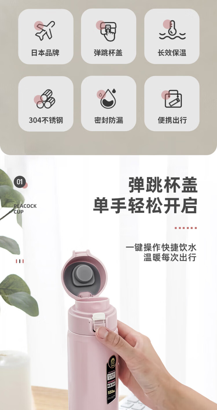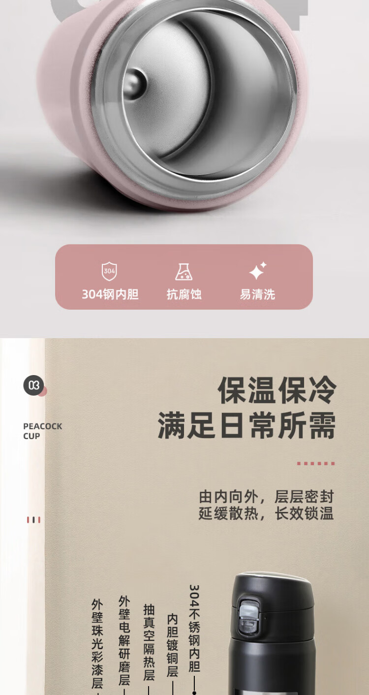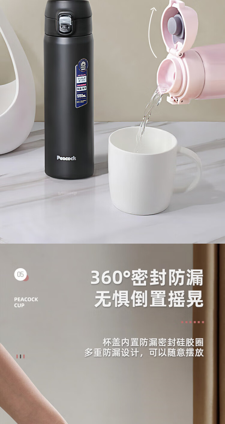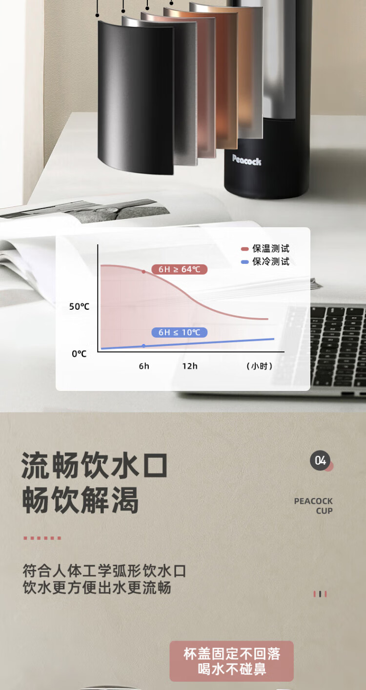Peacock Thermosbecher für Herren, großes Fassungsvermögen, tragbarer Thermosbecher aus Edelstahl, Geschäftsgeschenk, kann individuell angepasst werden