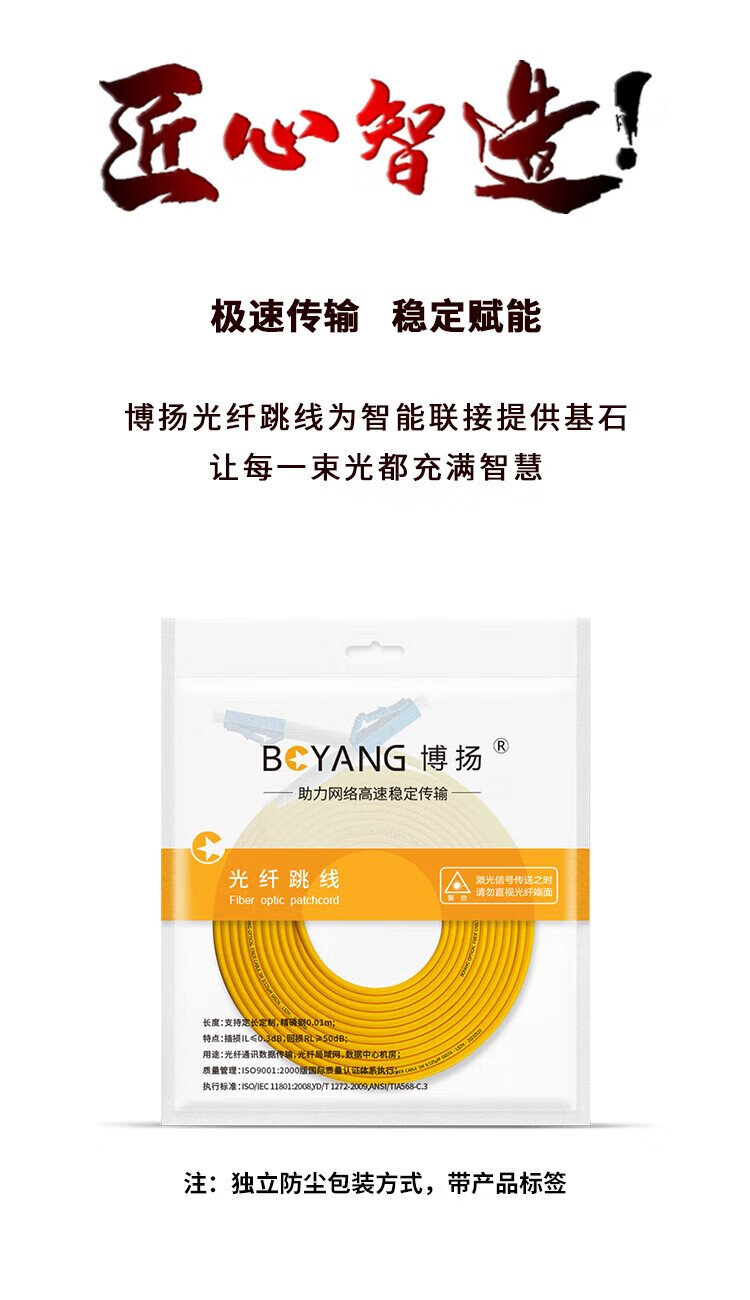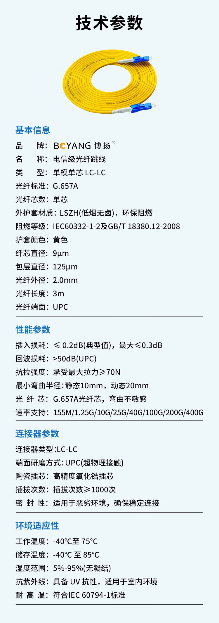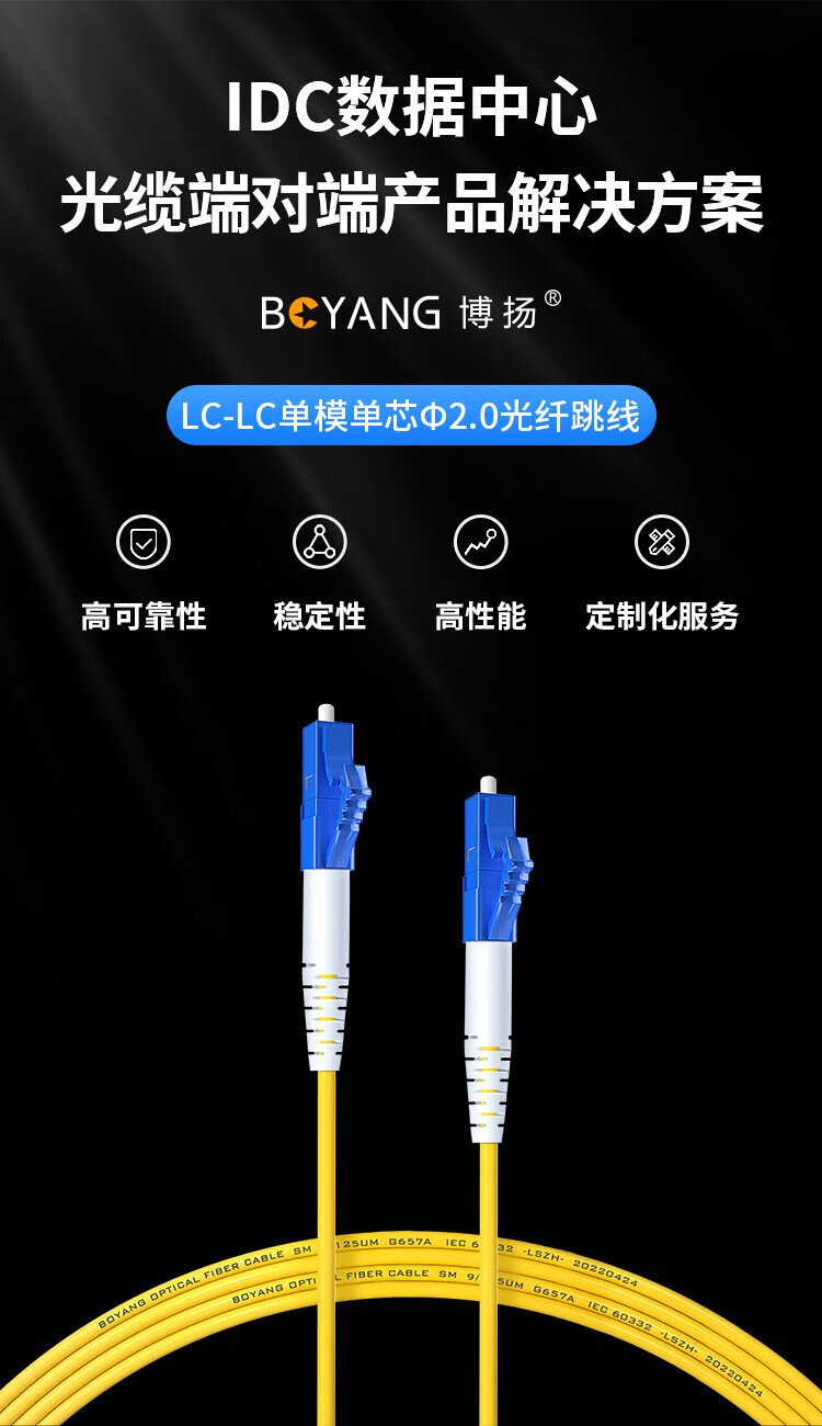 博扬(BOYANG)电信级光纤跳线LC-LC(UPC) 3米 单模单芯 Φ2.0阻燃低烟无卤跳纤光纤线尾纤lc-lc BY-305S