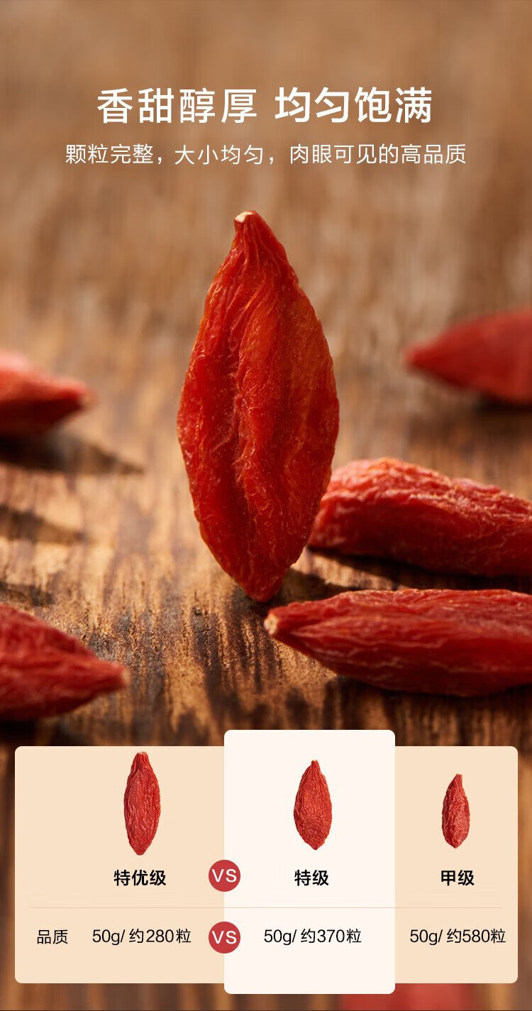 京东京造 特级红枸杞500g 宁夏中宁免洗红枸杞子 养生滋补枸杞茶250g*2