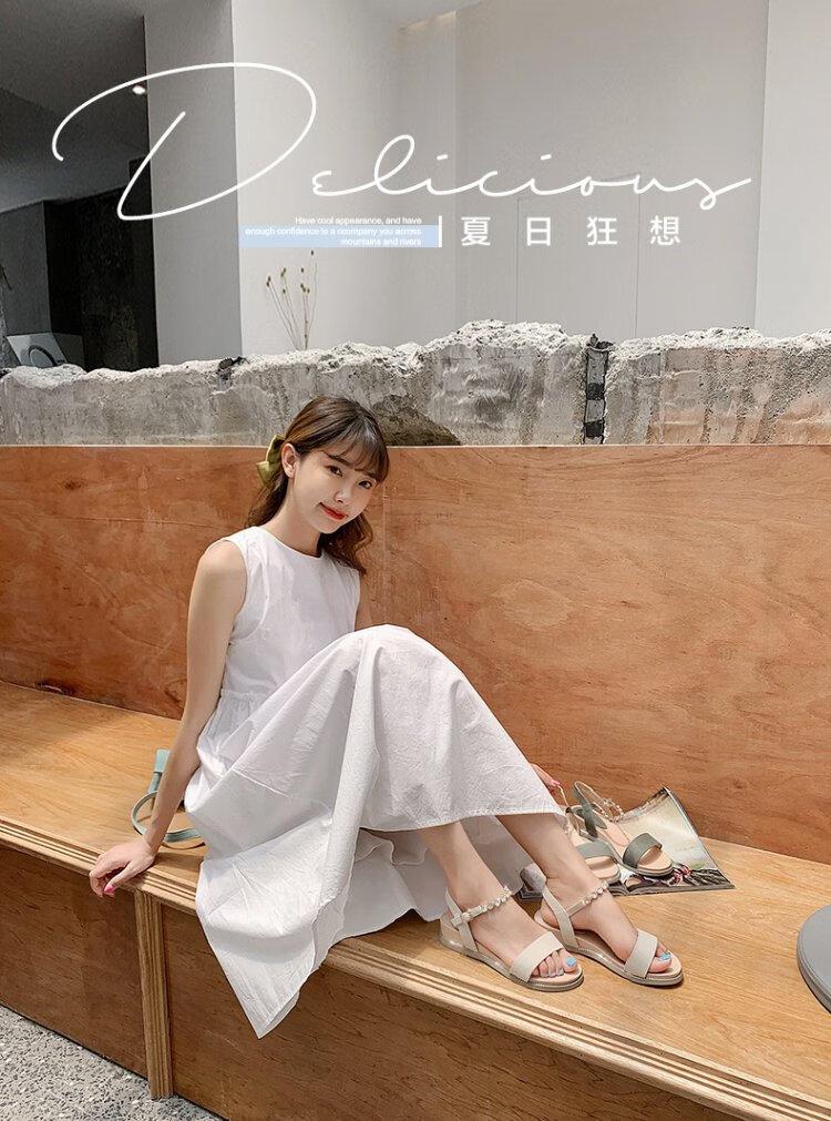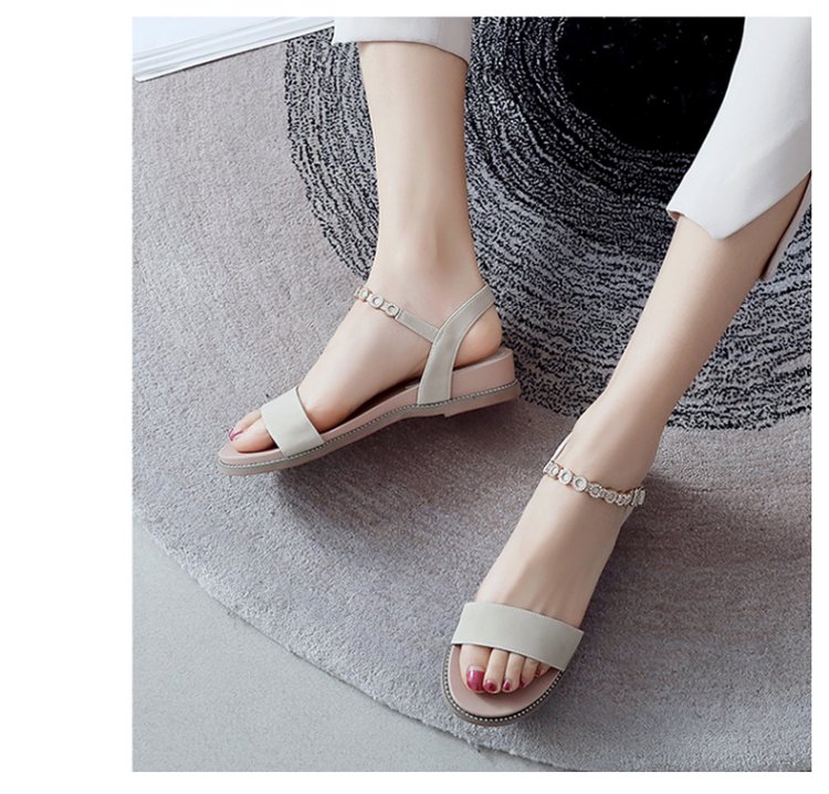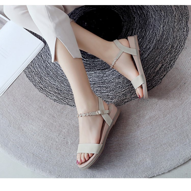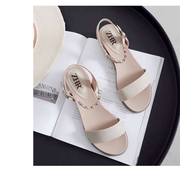 Seleccione los mejores productos ZHR sandalias para mujer con pedrería brillante zapatos de mujer estilo hada suelas gruesas que realzan la versión coreana celebridad de Internet zapatos planos cómodos y versátiles Moda INS tendencia de estilo callejero beige 37