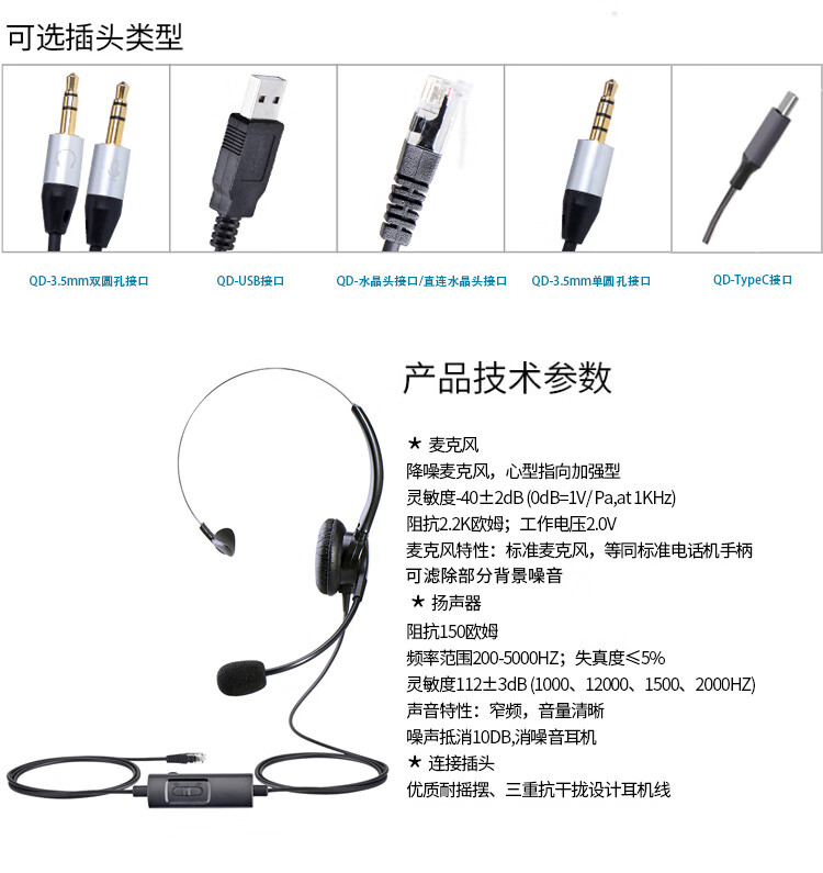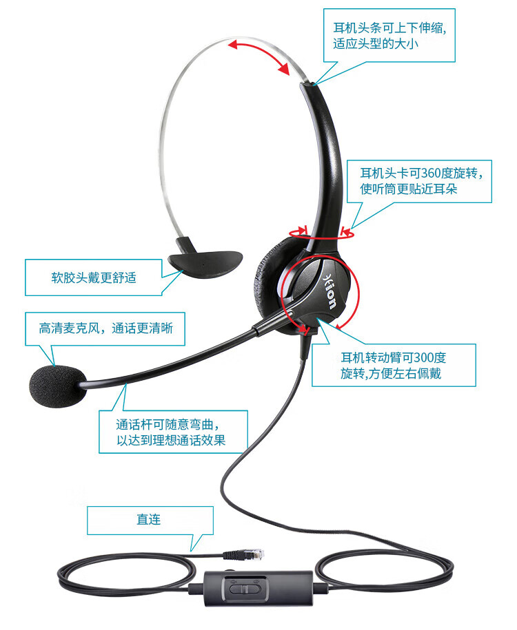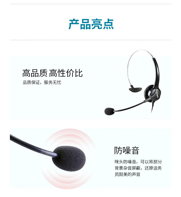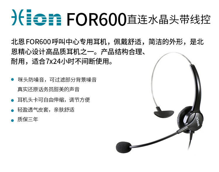 HION FOR600 headset single-ear operator headset/telephone headset/call center customer service/agent telemarketing headset - direct connection crystal head + volume adjustment + sound blocking