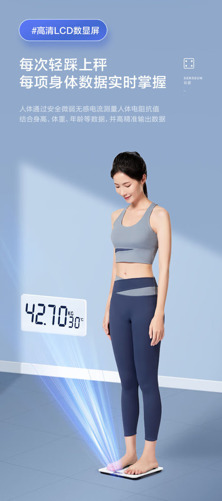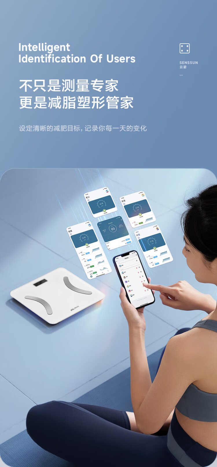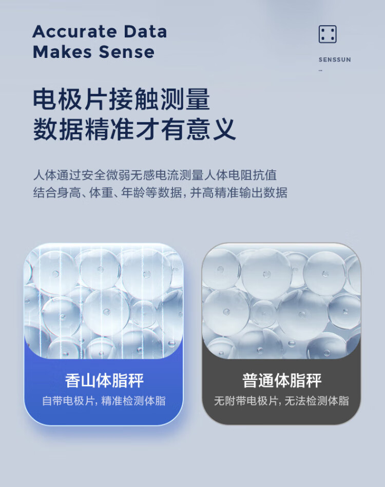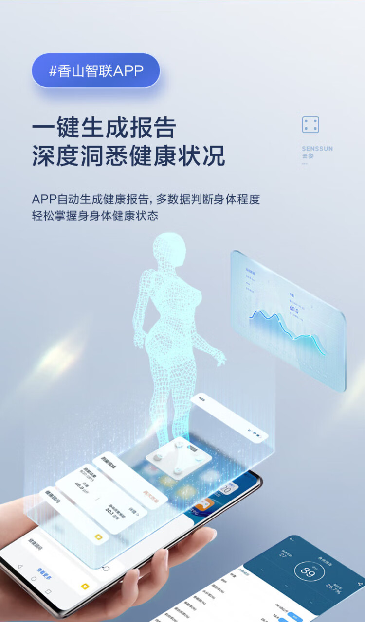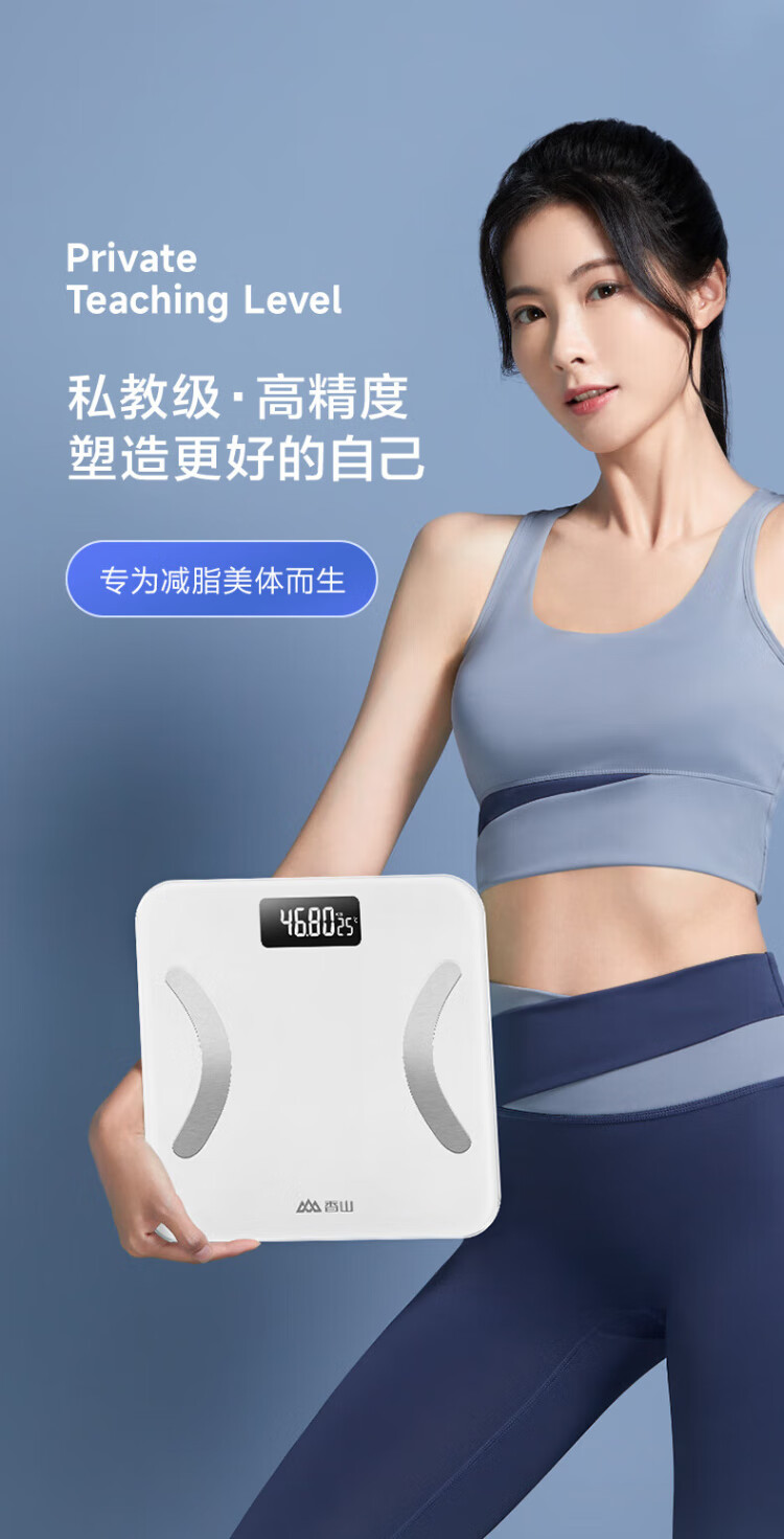 香山智能体脂秤体重秤 称重电子秤家用精准称体重秤【真电极】22项健康数据 云姿白【电池款】