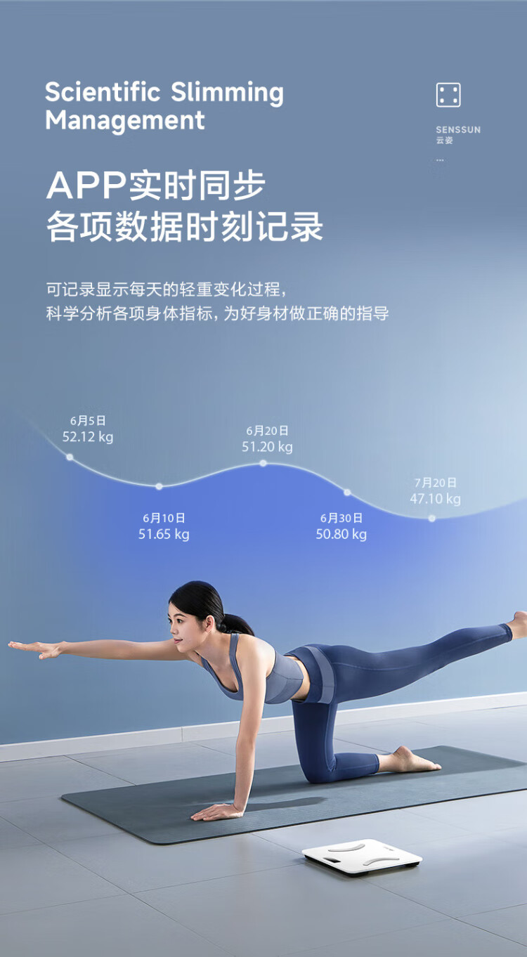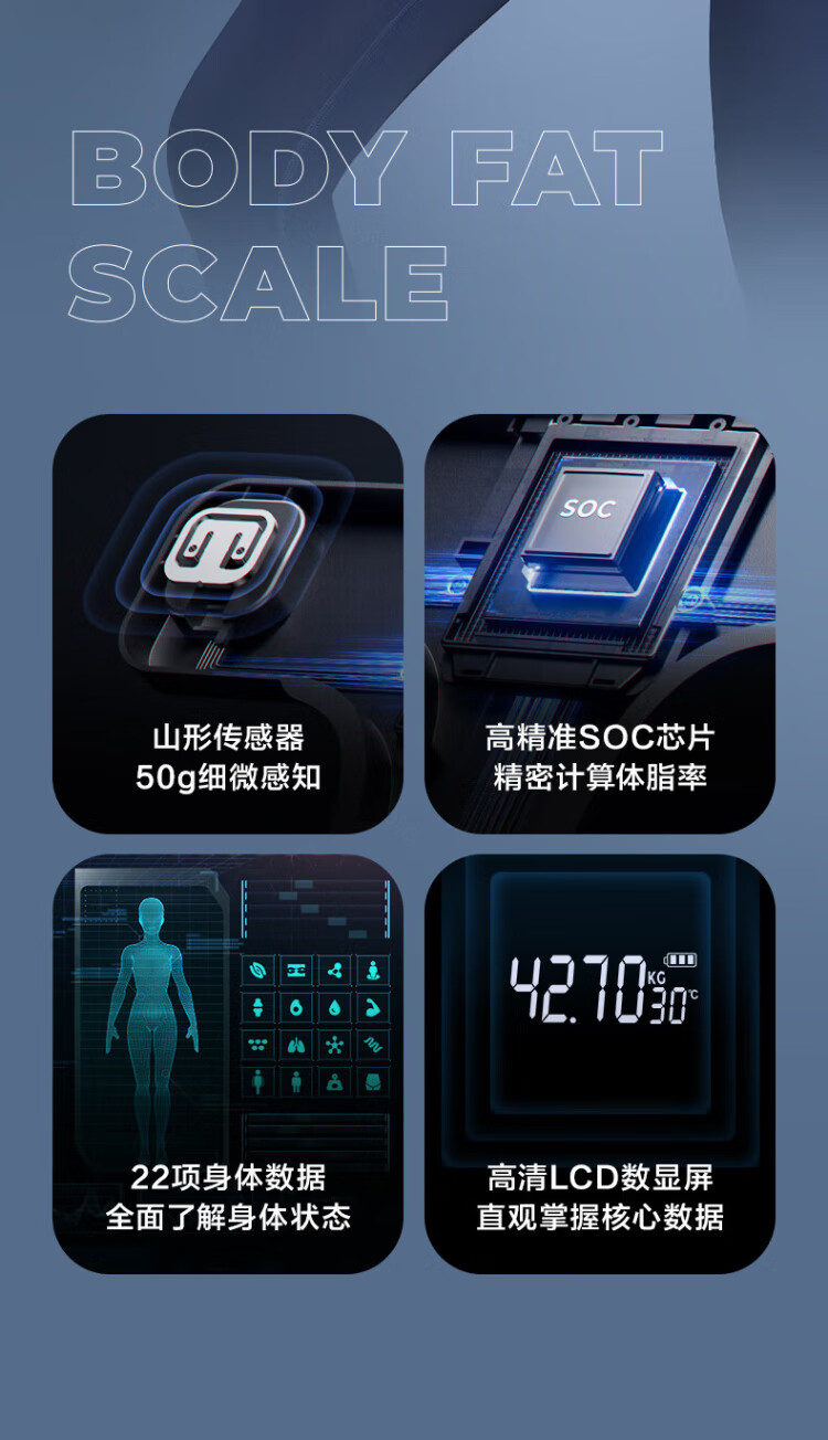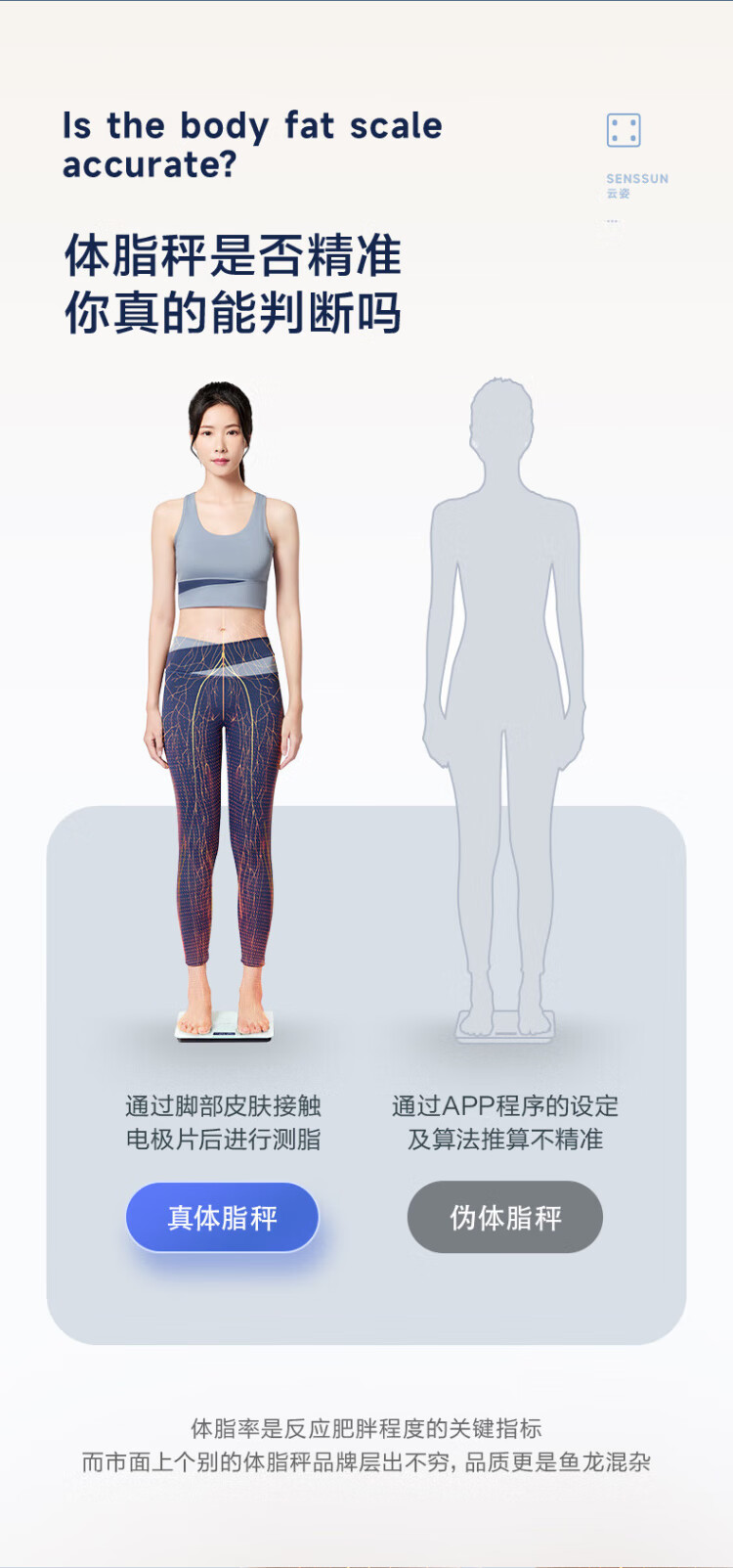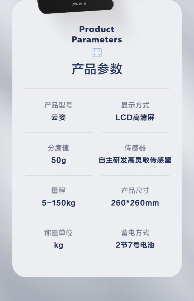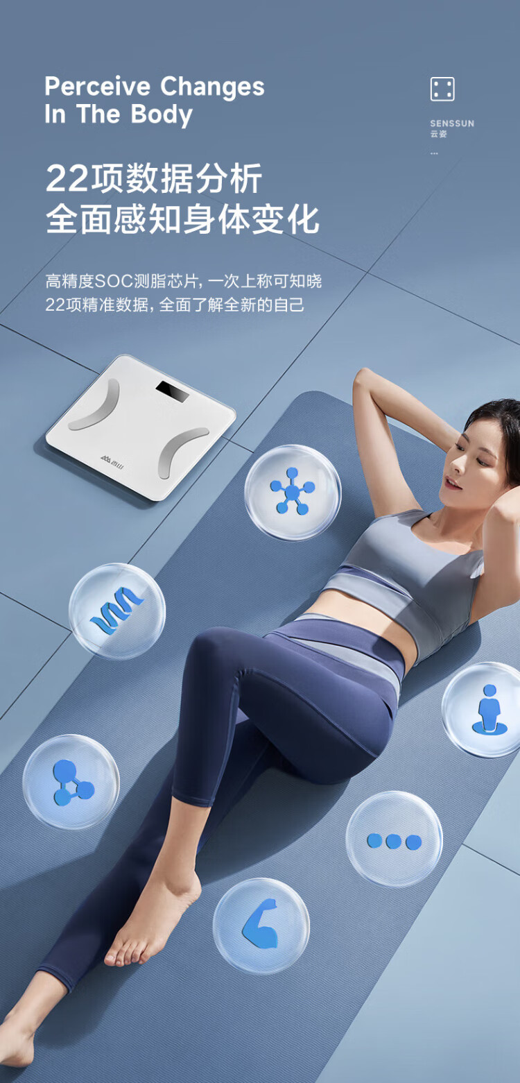 香山智能体脂秤体重秤 称重电子秤家用精准称体重秤【真电极】22项健康数据 云姿白【电池款】
