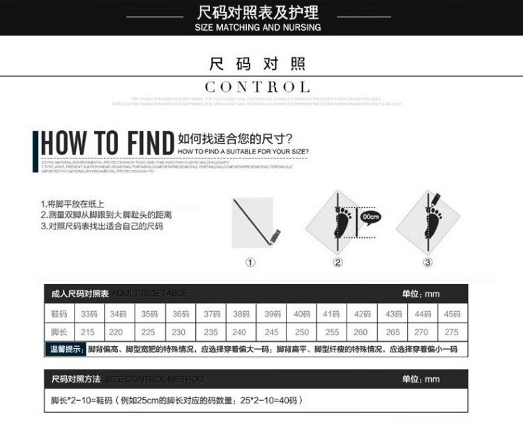 China (cm) 36 - 37 38 - 39 40 - 42 43 - 44 45 - 47