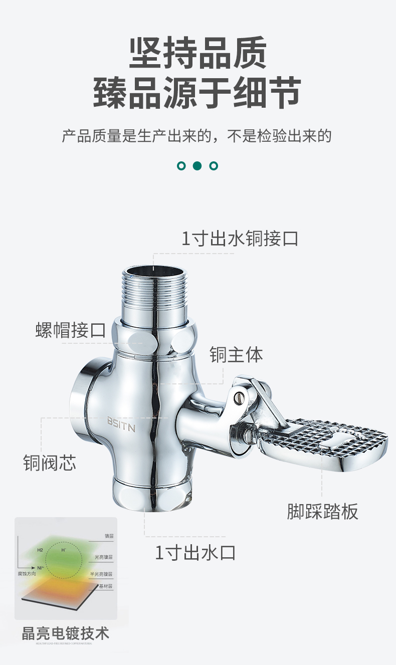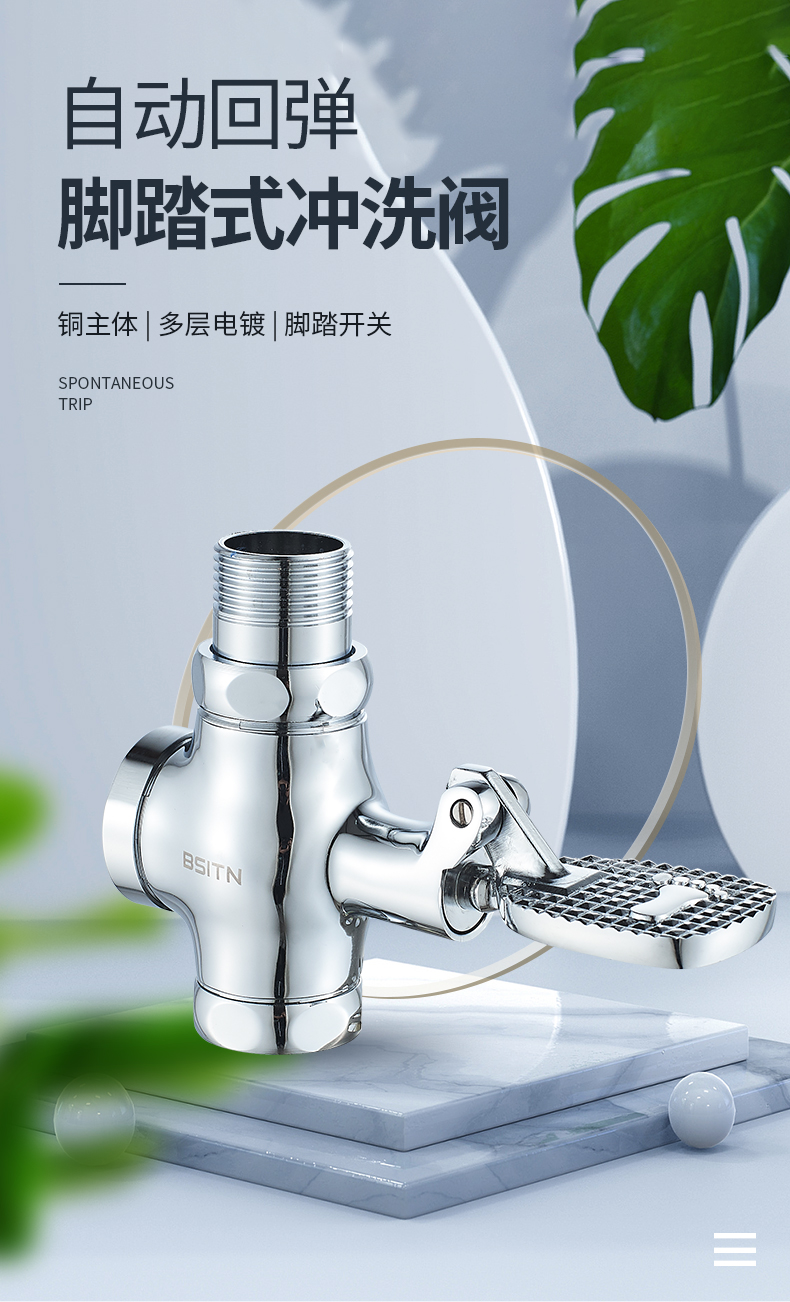 BSITN Badezimmer-WC-Fußspülventil, Hocktoilette, Hocktoilette, Fußspülung, Messingkörper, Spülventil B5009