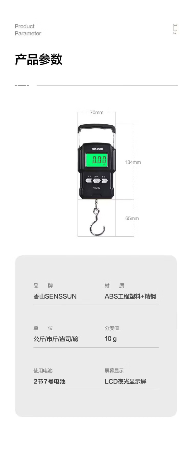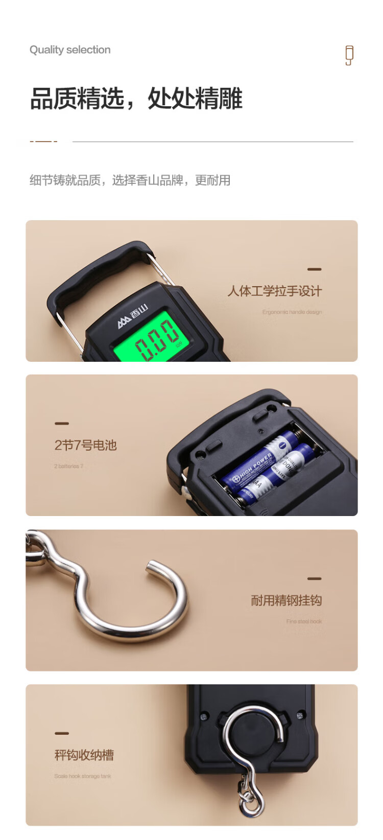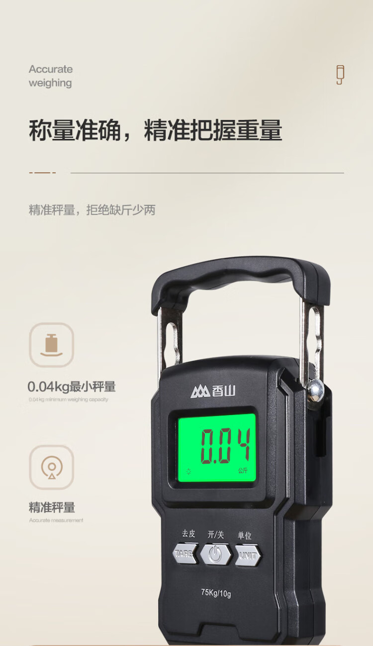 香山手提秤电子秤 便携秤克秤称菜快递吊秤高精度行李秤50kg 充电款