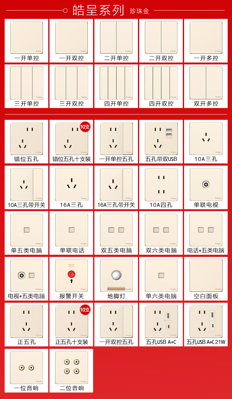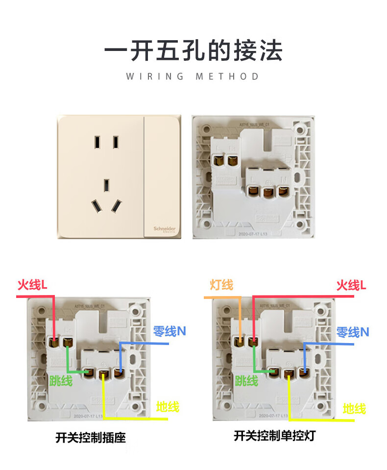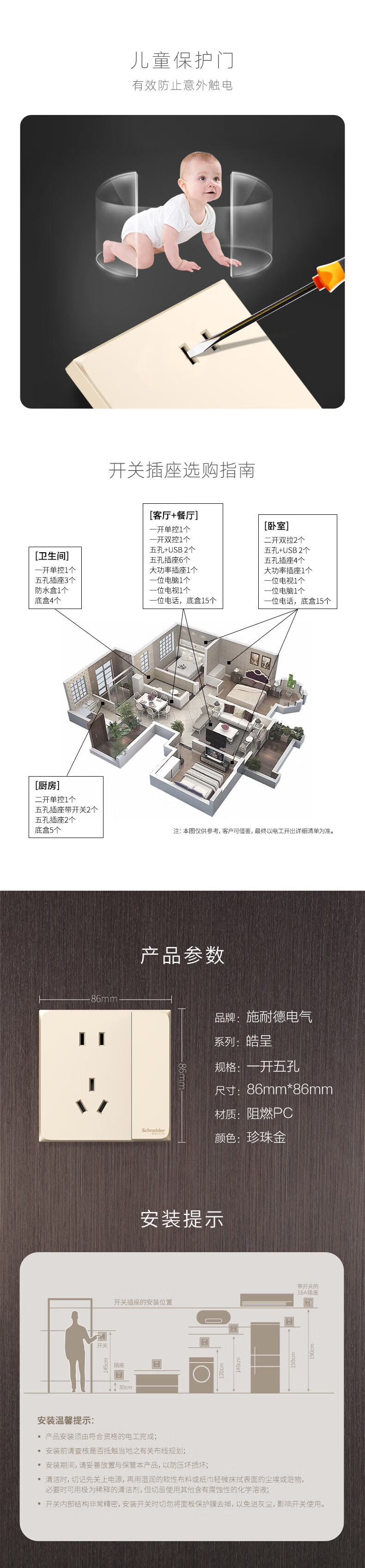 Schneider Electric five-hole socket with single control switch 86 type one-open five-hole 10A switch socket panel Haocheng series gold
