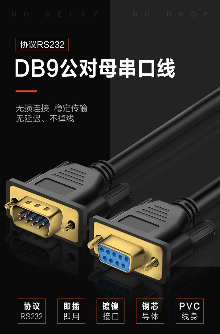 Fengyingzi RS232 serial port male to female connection cable DB9 (male)/DB9 (female) COM cable male to female extension cable straight through cable black 10 meters FYZ-WK17C