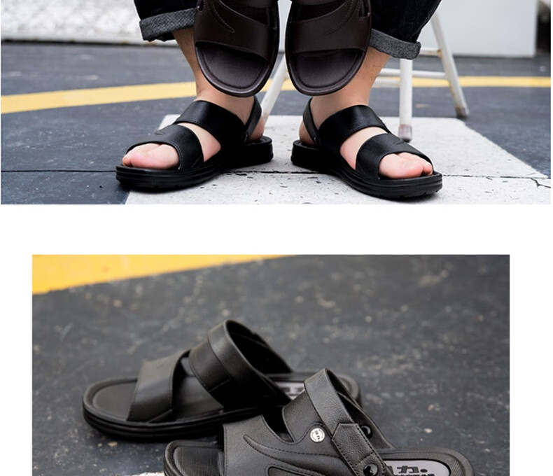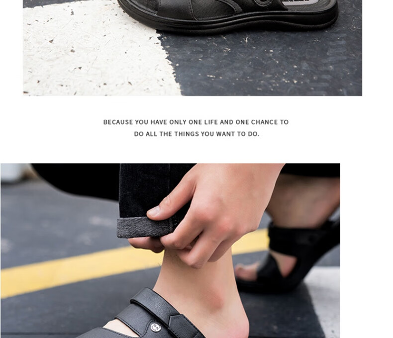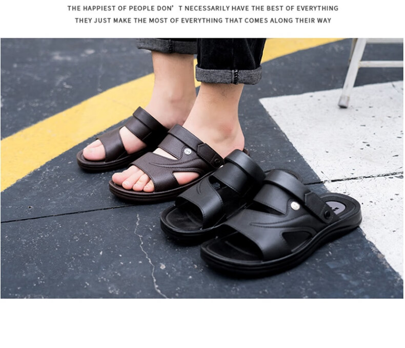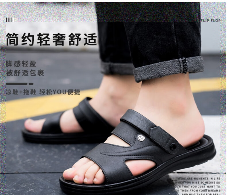 Pull back sandals men's casual outdoor two-wear beach shoes comfortable and lightweight sandals HL3888 black size 43