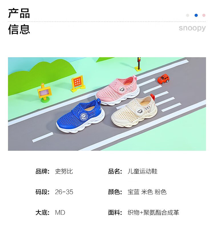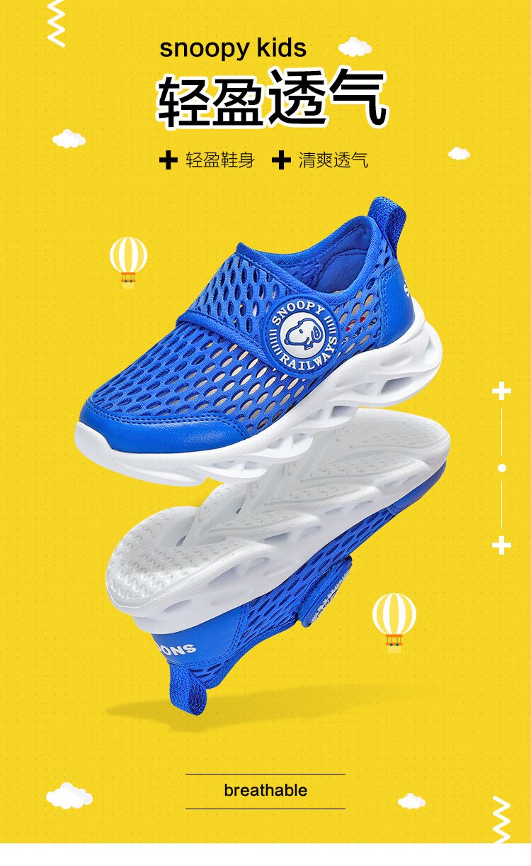 SNOOPY Chaussures pour Enfants Chaussures de Sport pour Enfants Chaussures décontractées à la Mode d'été pour garçons et Filles Maille Unique Respirant 3923 Bleu Saphir 34