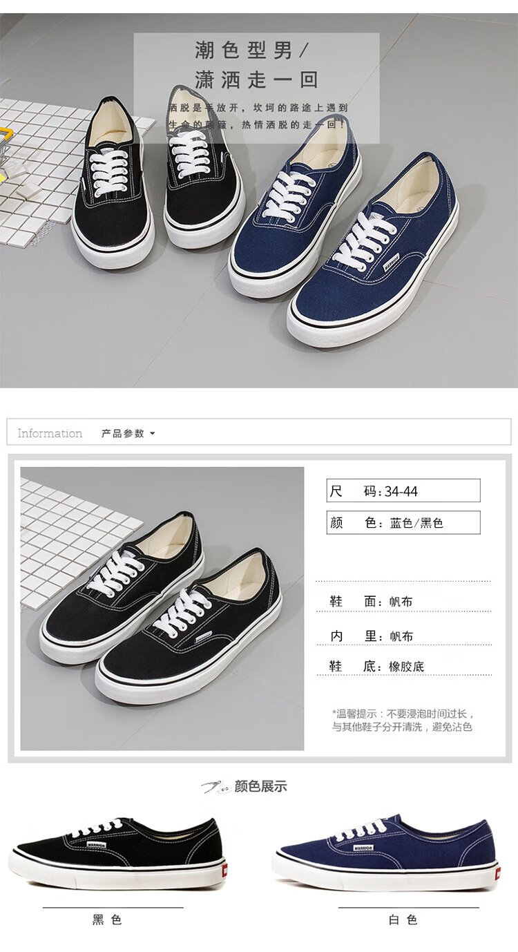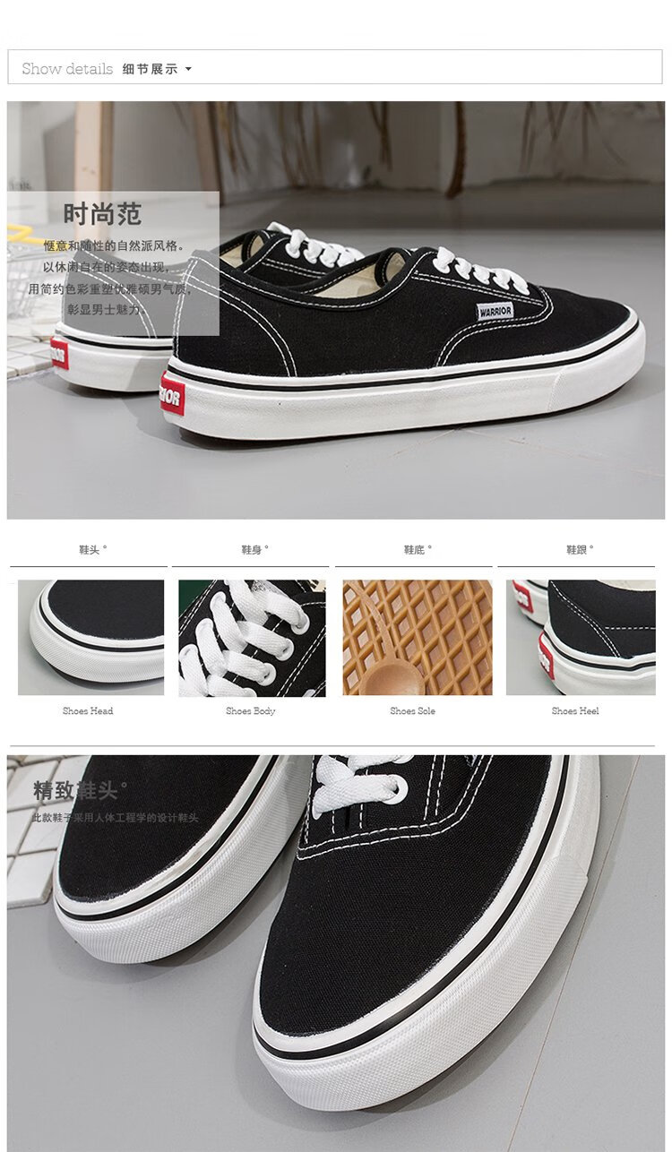 Warrior Men's Shoes Low-top Canvas Shoes Simple Versatile Casual Shoes Couples Fashion Trendy Sneakers WXY-999 Black 41