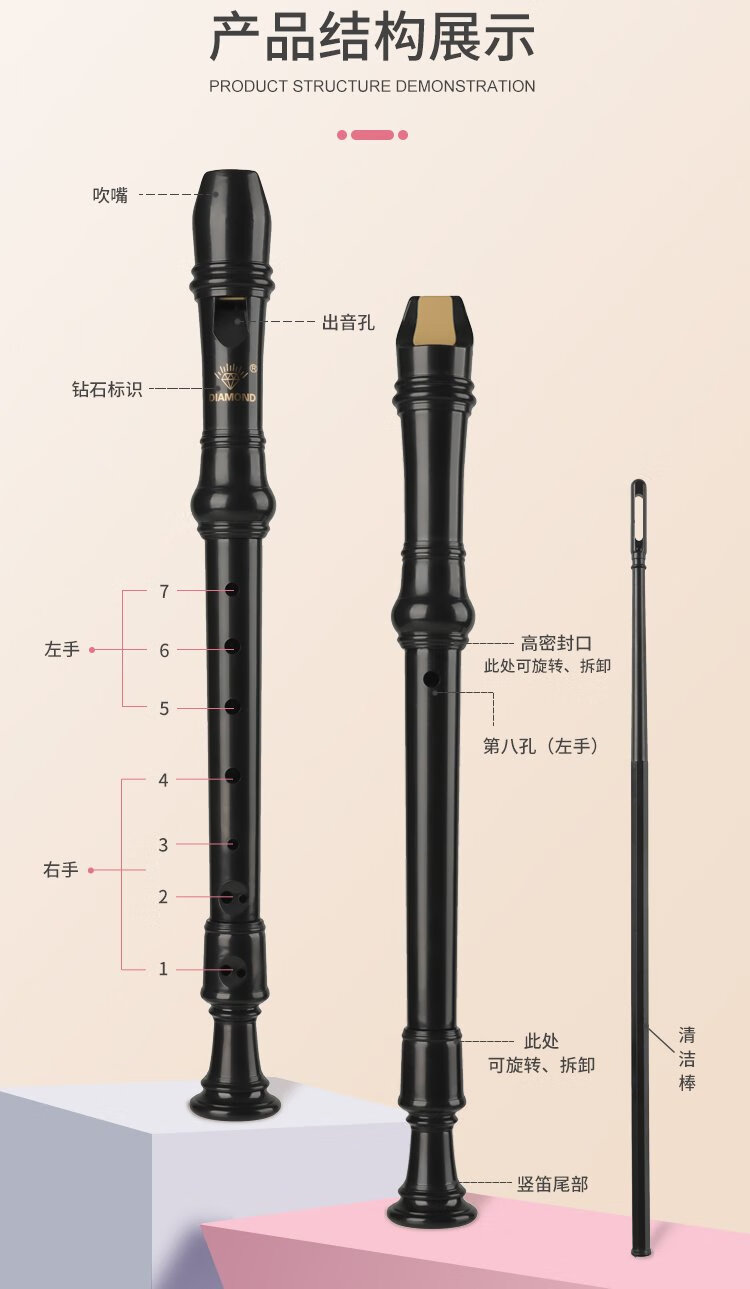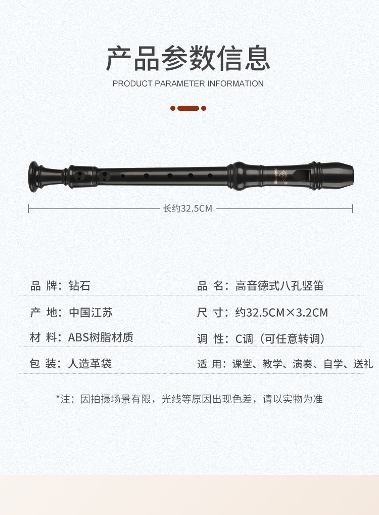 钻石竖笛8孔高音德式八孔笛子C调学生儿童成人初学演奏日耳曼式笛子