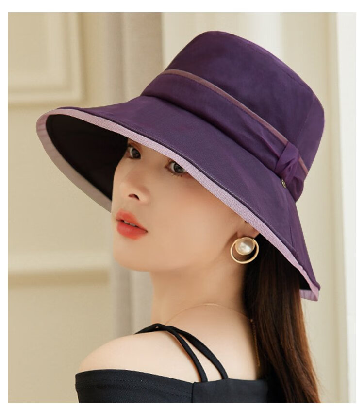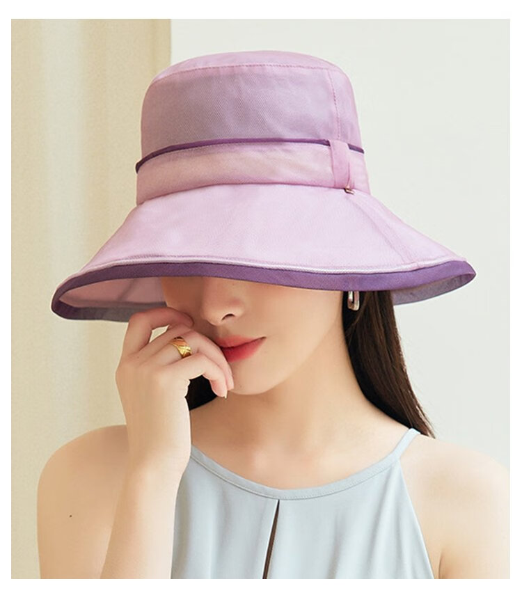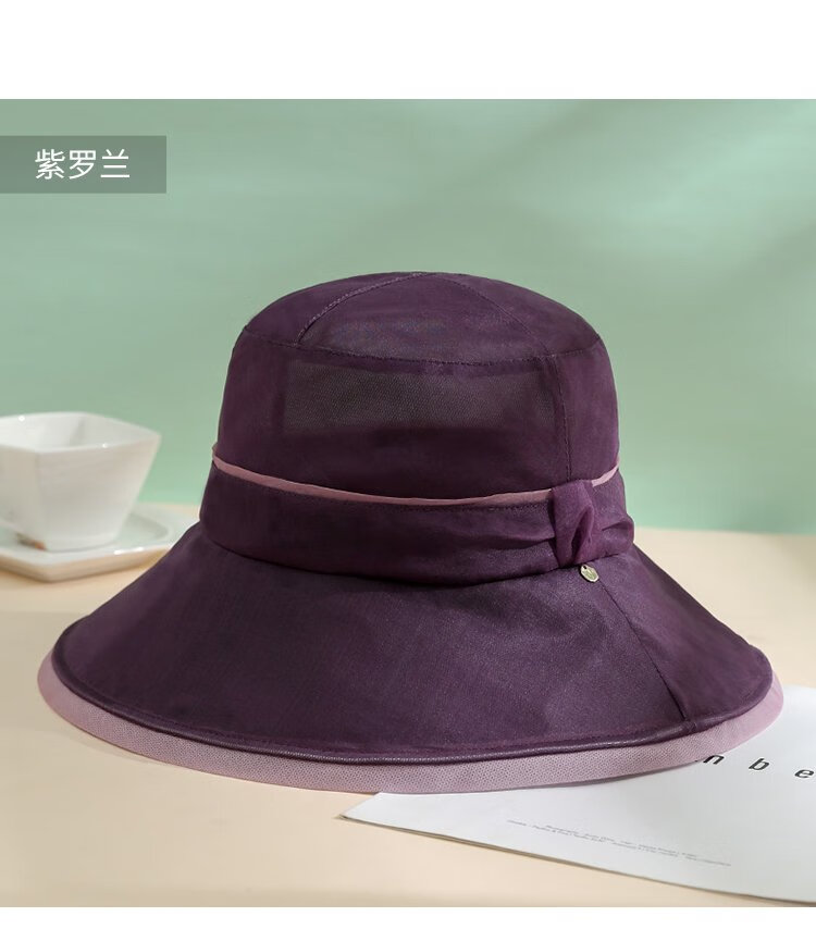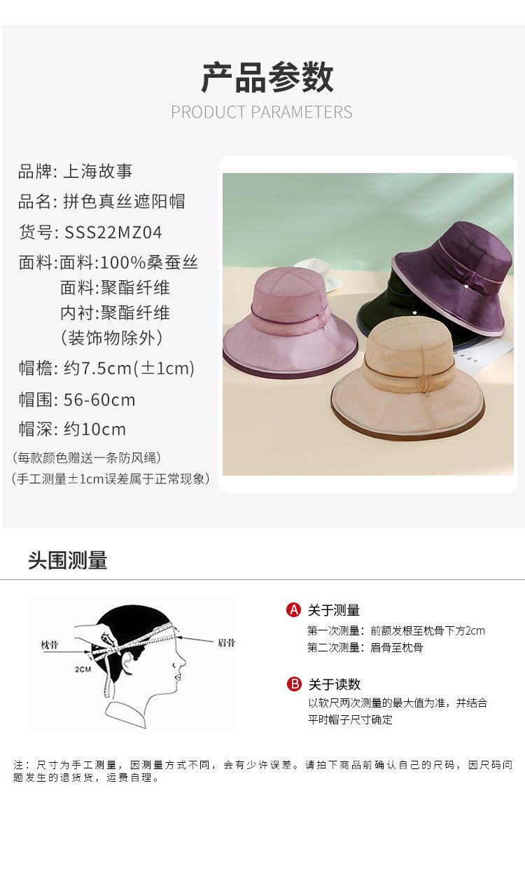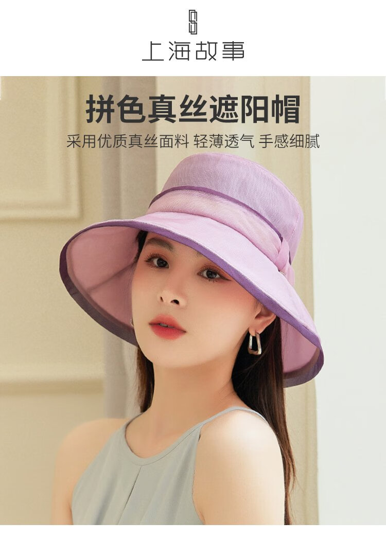 上海故事真丝帽子女夏桑蚕丝防紫外线渔夫帽透气可折叠大檐防晒遮阳帽礼物