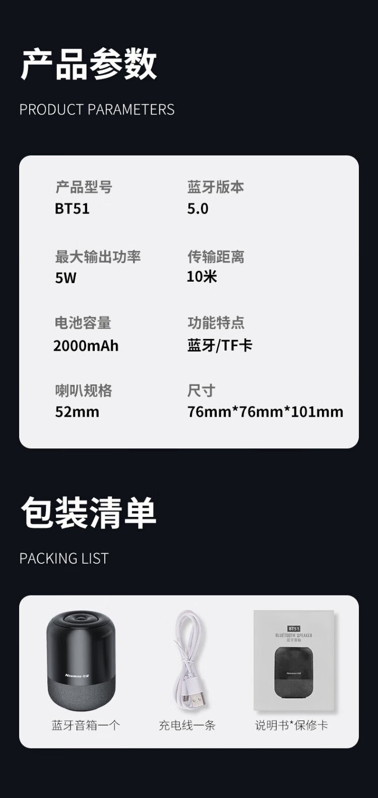 纽曼BT51蓝牙音箱电脑音响家用桌面重低音炮迷你便携式车载小钢炮笔记本小音响微信收款插卡播放器