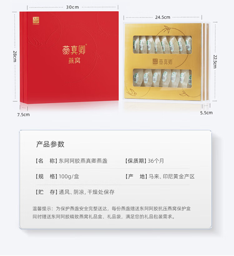 东阿阿胶花少好营养 燕真卿干燕窝100g 高唾液酸可溯源 送老婆中秋节礼物
