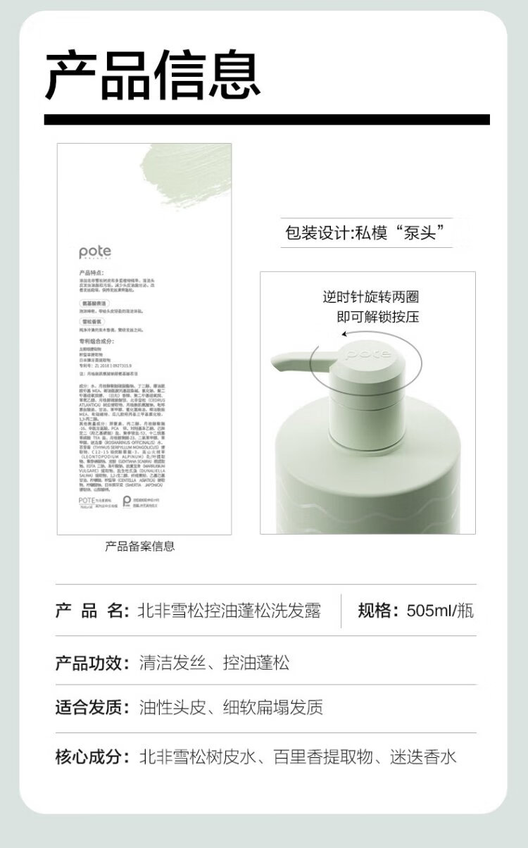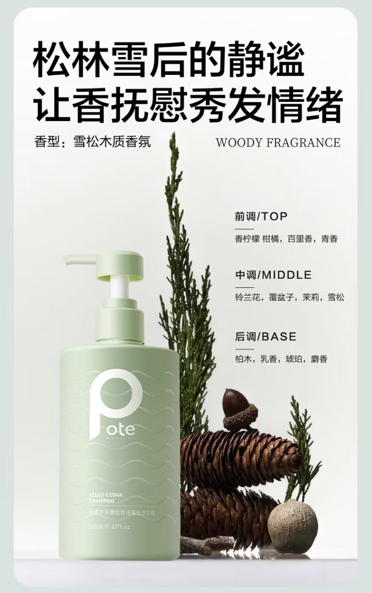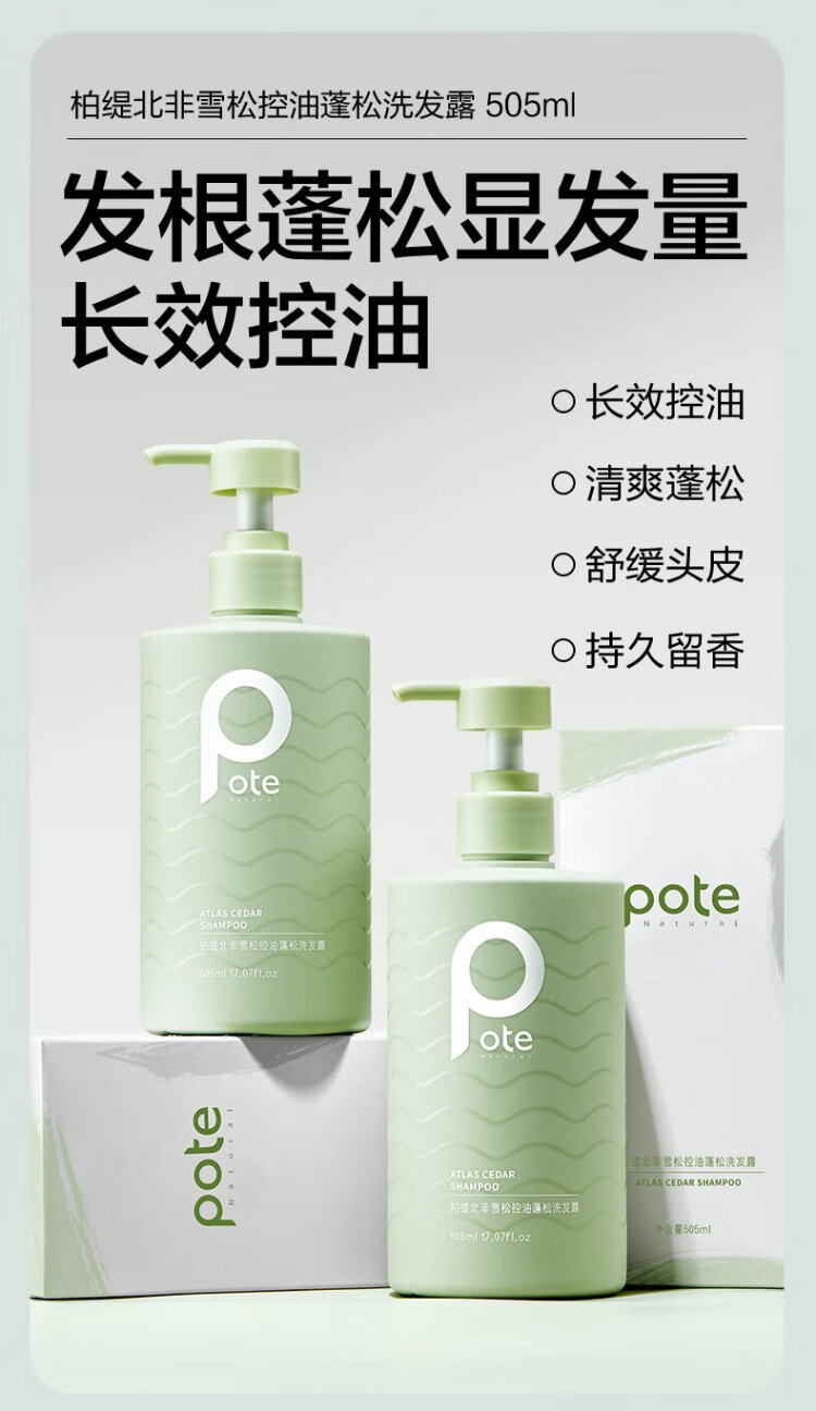 柏缇北非雪松控油蓬松洗发水 清爽去屑止痒留香氨基酸洗发露 505ml