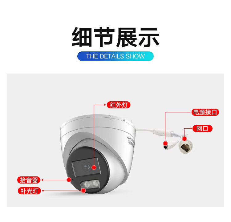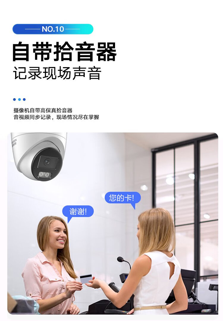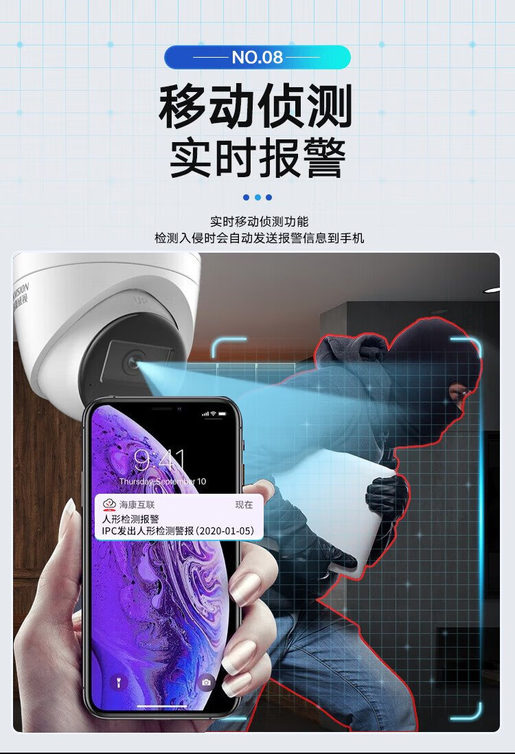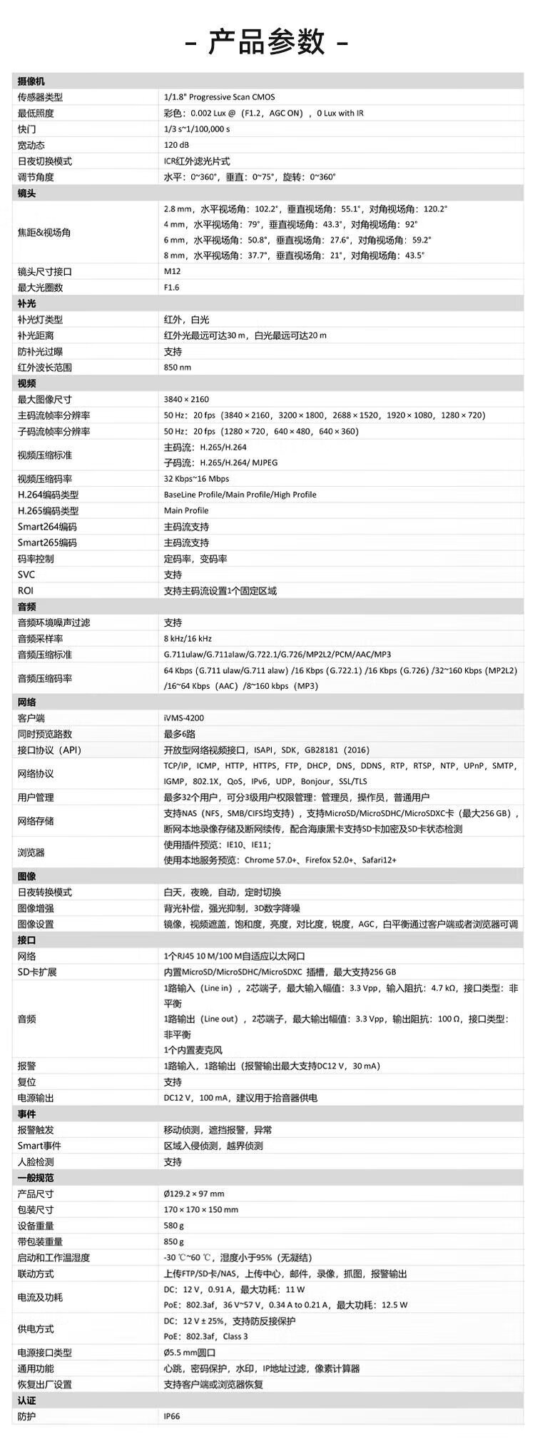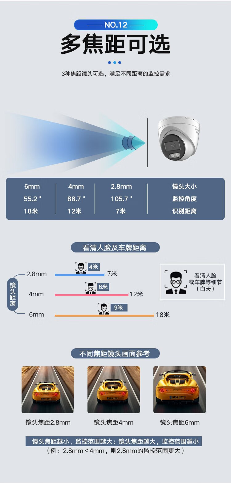 HIKVISION海康威视监控摄像头室外800万高清双光全彩夜视可拾音网线供电插卡存储移动侦测3386FWDV3-LS 4MM