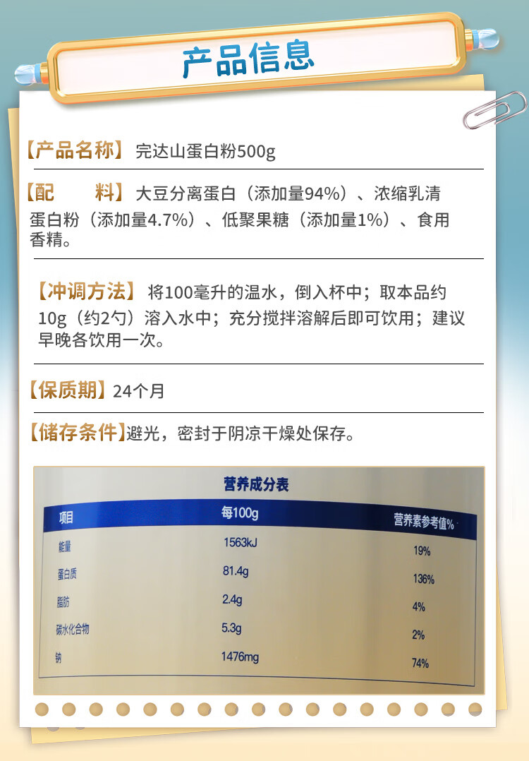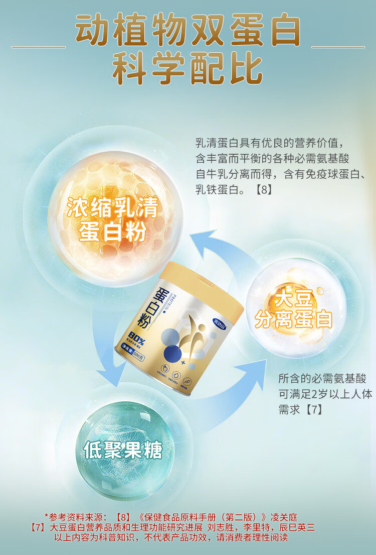 完达山蛋白粉大豆分离蛋白乳清蛋白粉中老年人成人蛋白粉 80%罐装500g