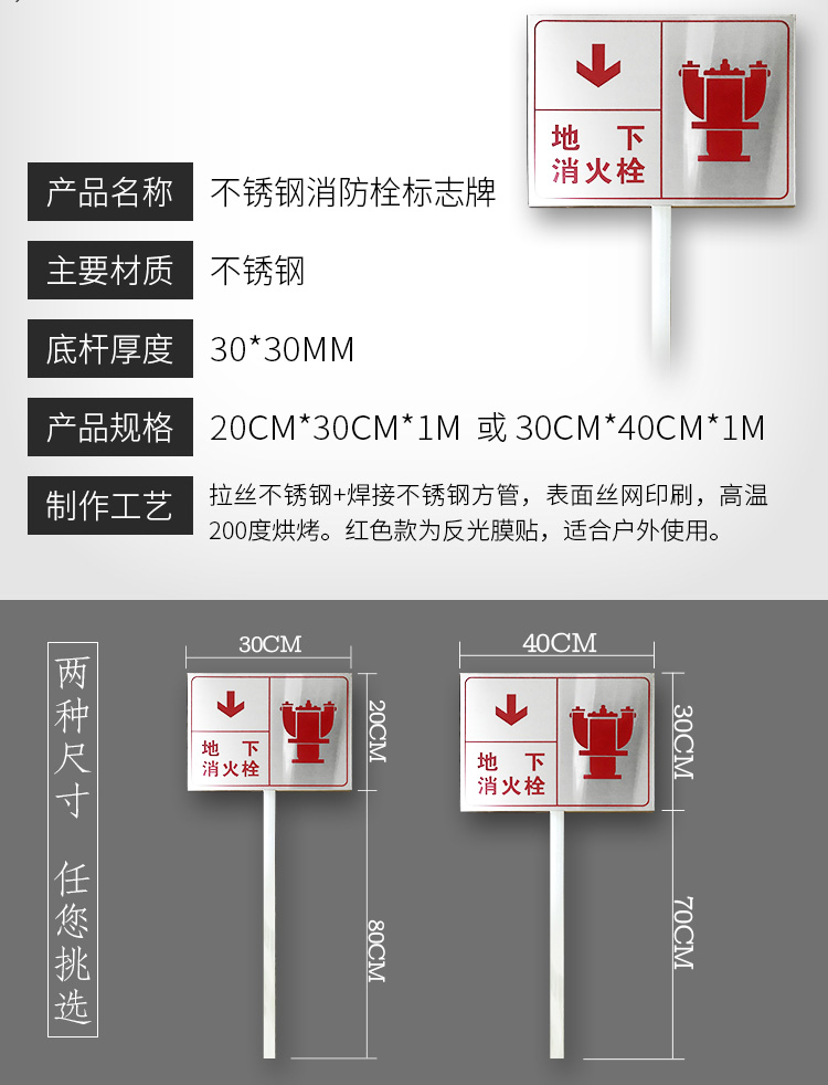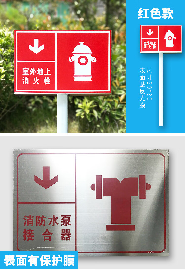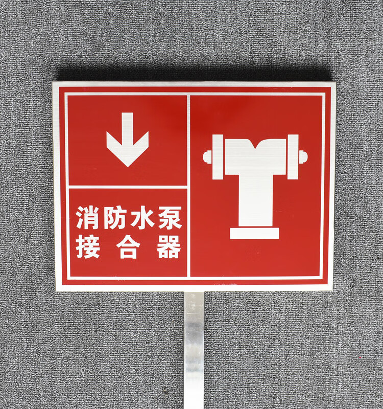 中环力安【红底消防水泵接合器40*30cm】不锈钢立插带杆警示标示牌MYN9214B