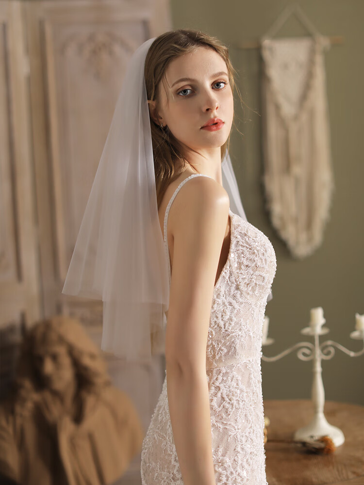 Dingjingsen Velo De Novia Súper Hada, Foto De Boda, Certificado, Velo Pequeño Festivo De Doble Capa, Propuesta, Fotografía De Viaje, Dama De Honor Ritual