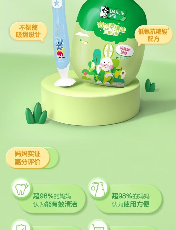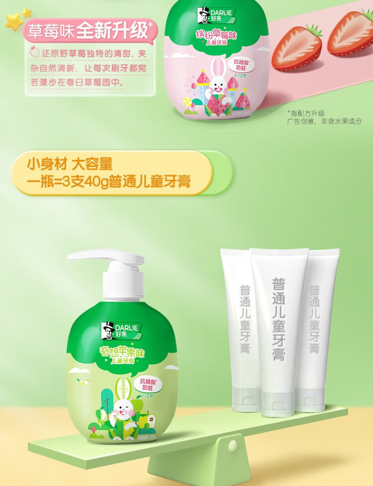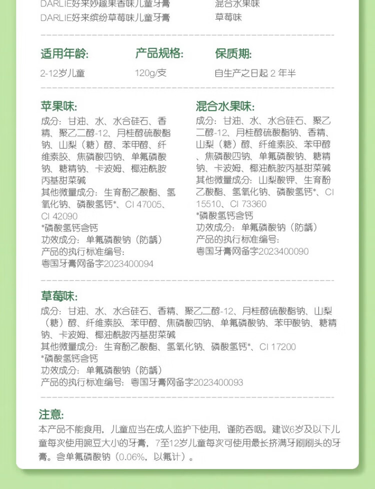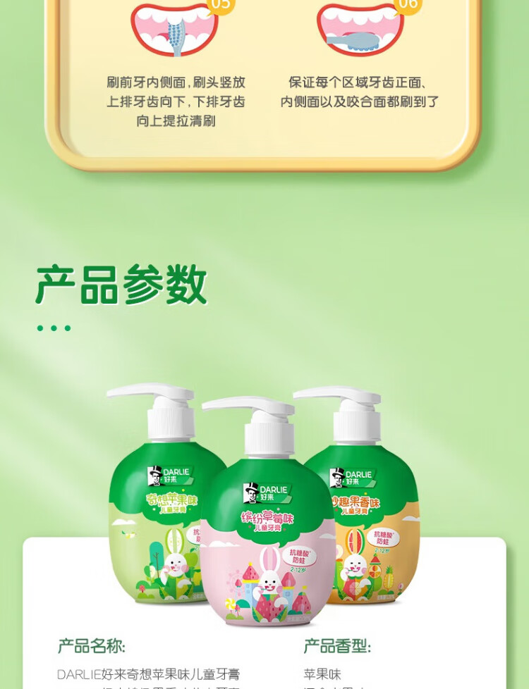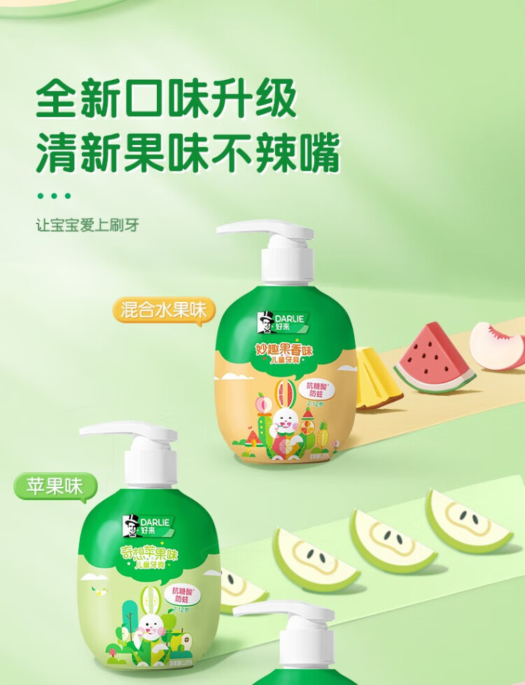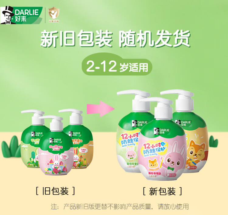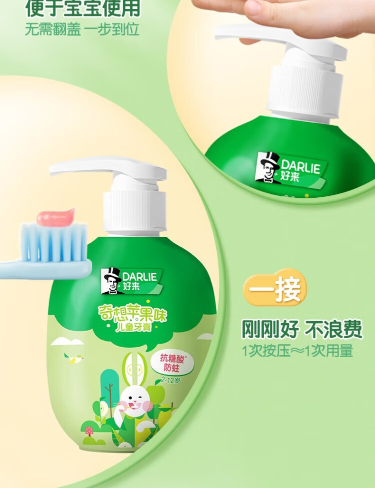 DARLIE好来(原黑人)按压式儿童牙膏套装2-3-6-12岁混合口味360g防蛀含氟